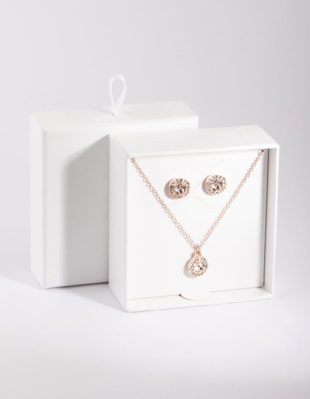 Rose Gold Diamond Simulant Circle Necklace & Earrings Set