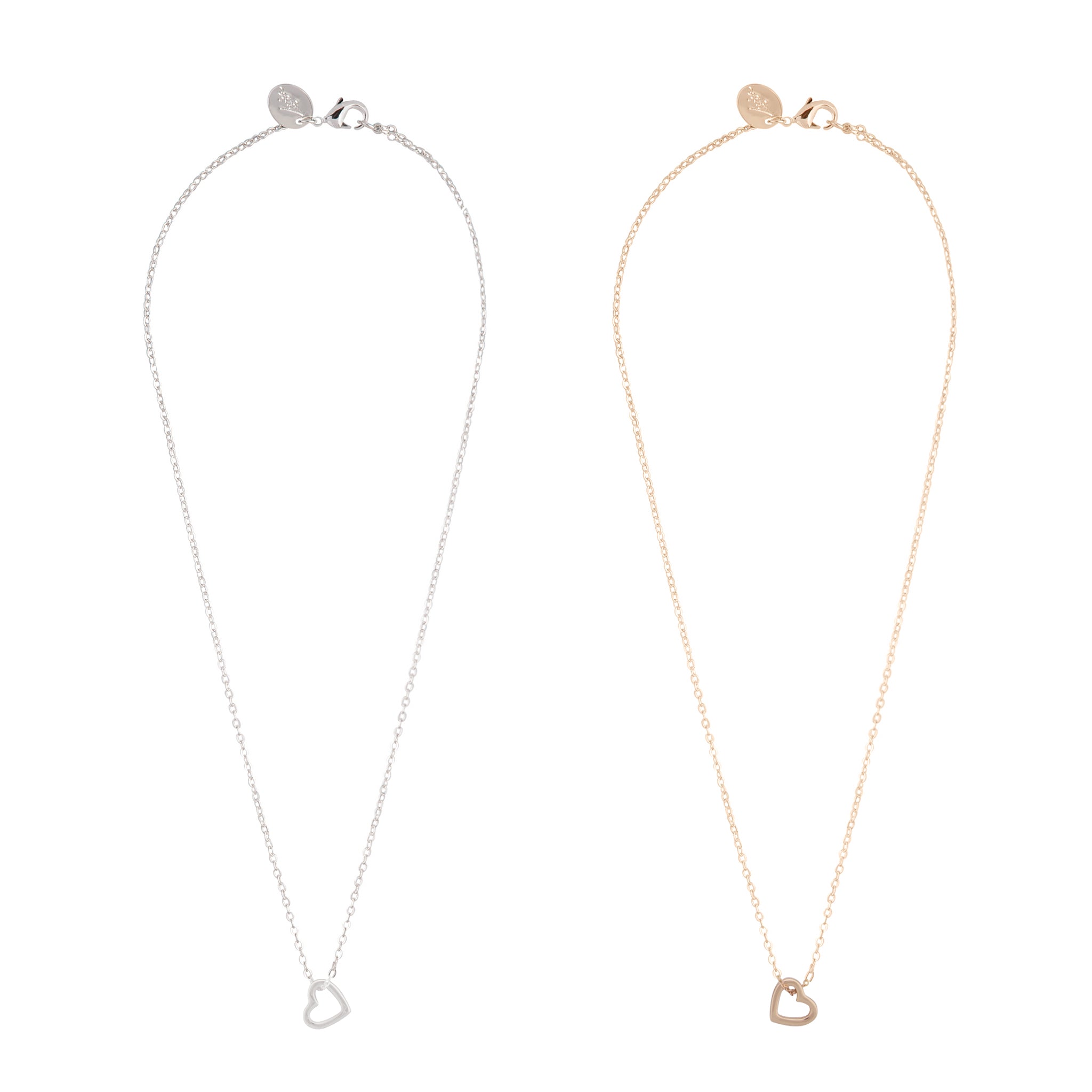 Our tear and share packs are perfect for gift giving. Keep one to yourself and give the other to a friend or loved one. This duet of necklaces features an open heart design in gold and silver tones.
