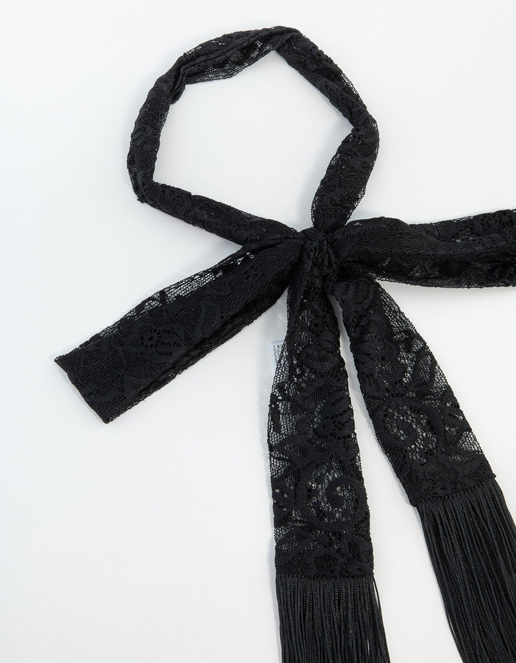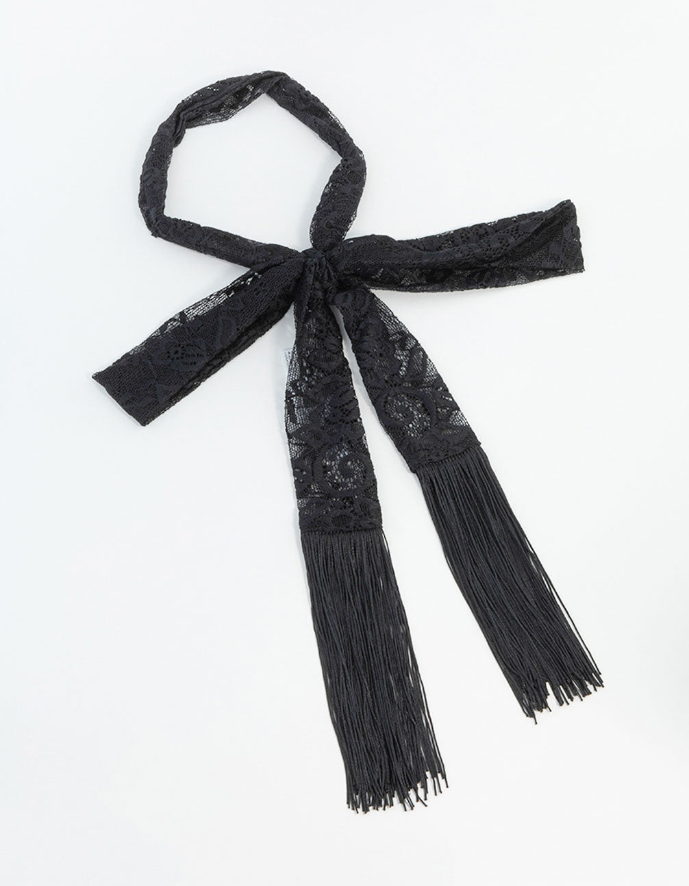 This beautiful thin fabric lace fringe scarf features a stylish design to dress up any outfit. The lace material is lightweight and airy, making it perfect for all year wear and the long fringed ends add a bohemian flair and movement as you walk. Wear this draped around your neck, shoulders or head for a chic look.