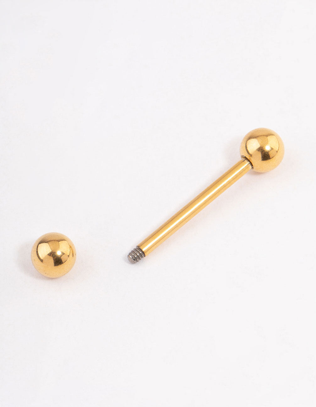 - This simple nipple bar is crafted with genuine gold plated titanium.