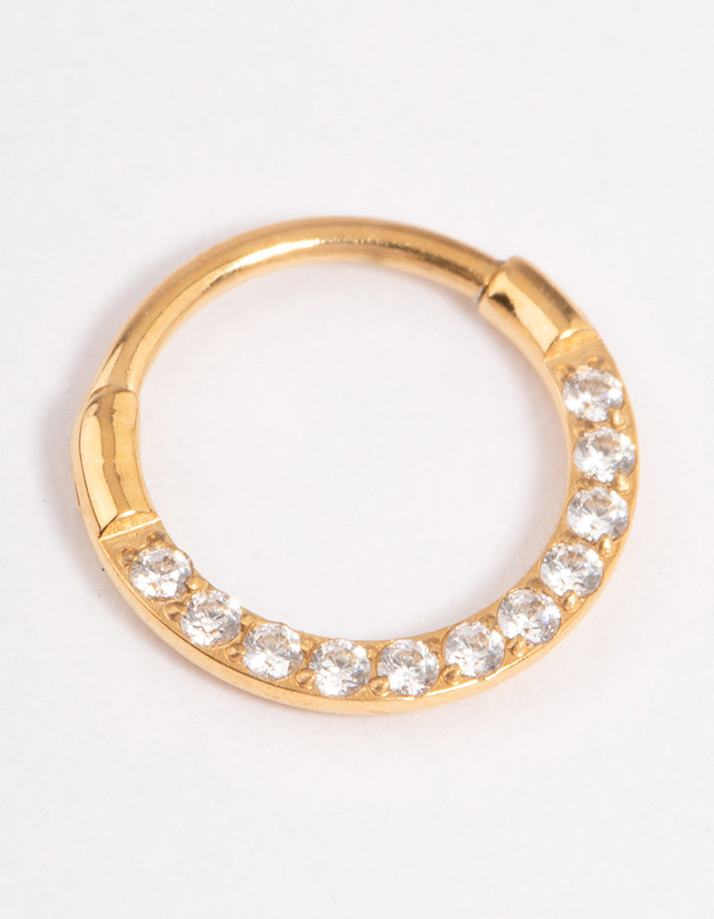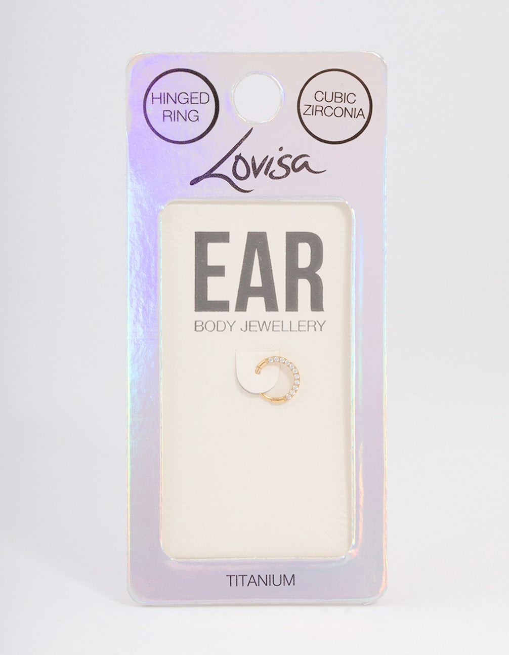Gold Plated Titanium Cubic Zirconia Clicker Earring 7mm