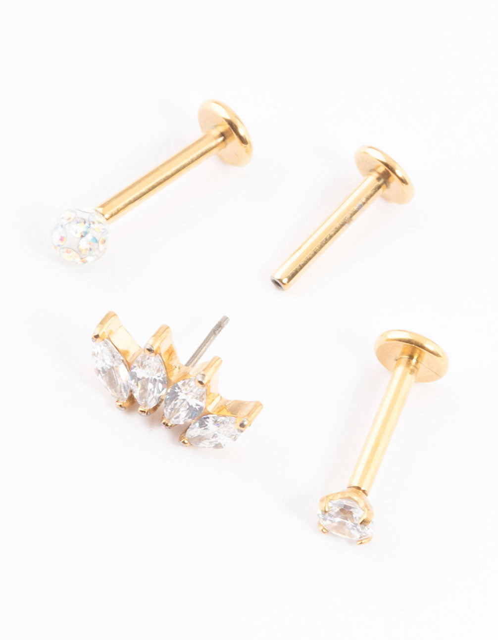 Gold Plated Titanium Pave Marquise Threadless Flat Back Pack
