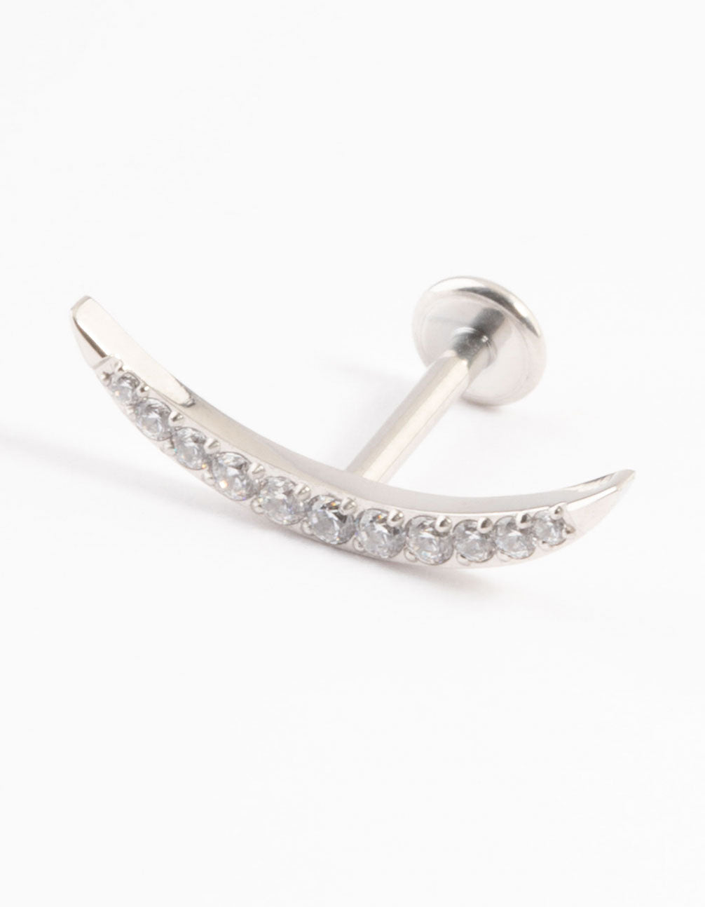 Embellished piercings are the latest trend to hit the runway! From versatile titanium studs, body piercings, to curated ear piercings — explore our range of threadless, titanium jewellery for a unique and personalised look. This flat back stud features a diamante encrusted half moon design and also has a threadless style, meaning it is more secure but can still be taken out if needed.