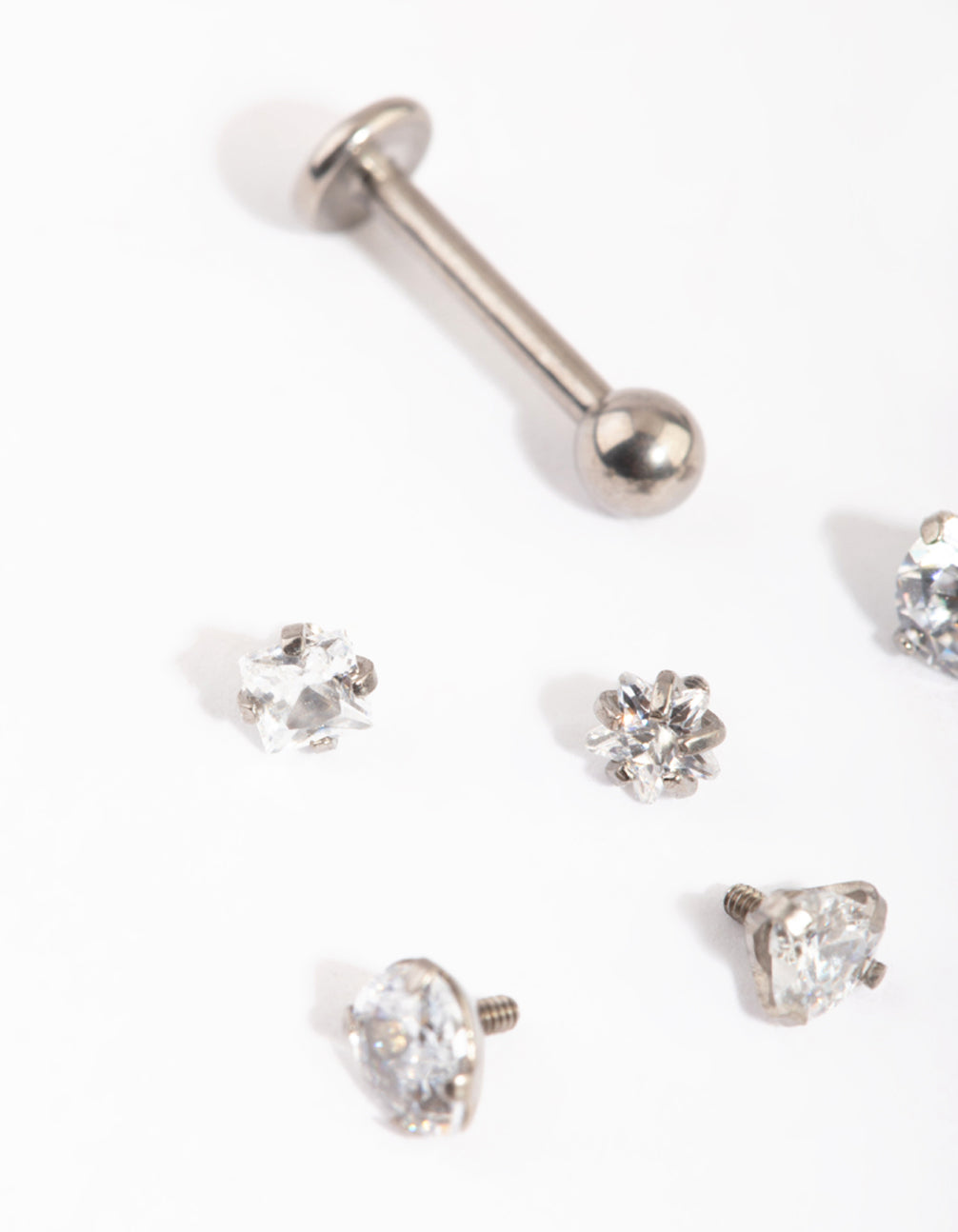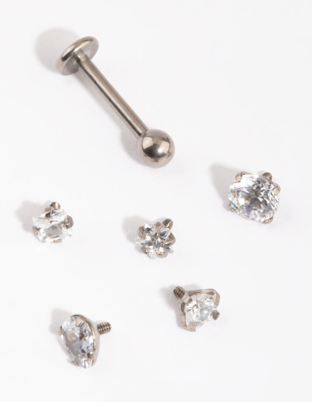 Switch up your style effortlessly with this Titanium Single Flat Back Bar & Interchangeable Ends Pack. This versatile jewellery set includes one titanium flat back bar paired with six unique screw-on ends, giving you endless options to customise your look. The sleek, titanium design is perfect for sensitive skin and ensures comfortable all-day wear, making it ideal for cartilage or helix piercings. Whether you're feeling minimalist or want to add some flair, this set has you covered. Pair it with casual outfits for a subtle touch or use it to complement your bold evening looks. This mix-and-match set is a must-have for any jewellery lover!