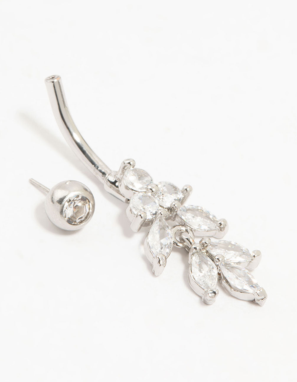 Upgrade your piercing game with this belly bar. Crafted from durable, hypoallergenic titanium, it features a drop design adorned with sparkling baguette cut marquise diamante crystals.