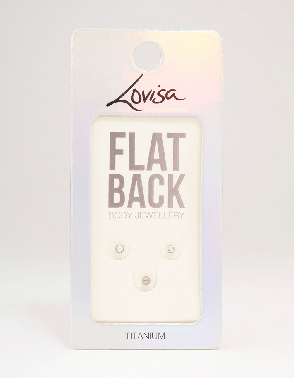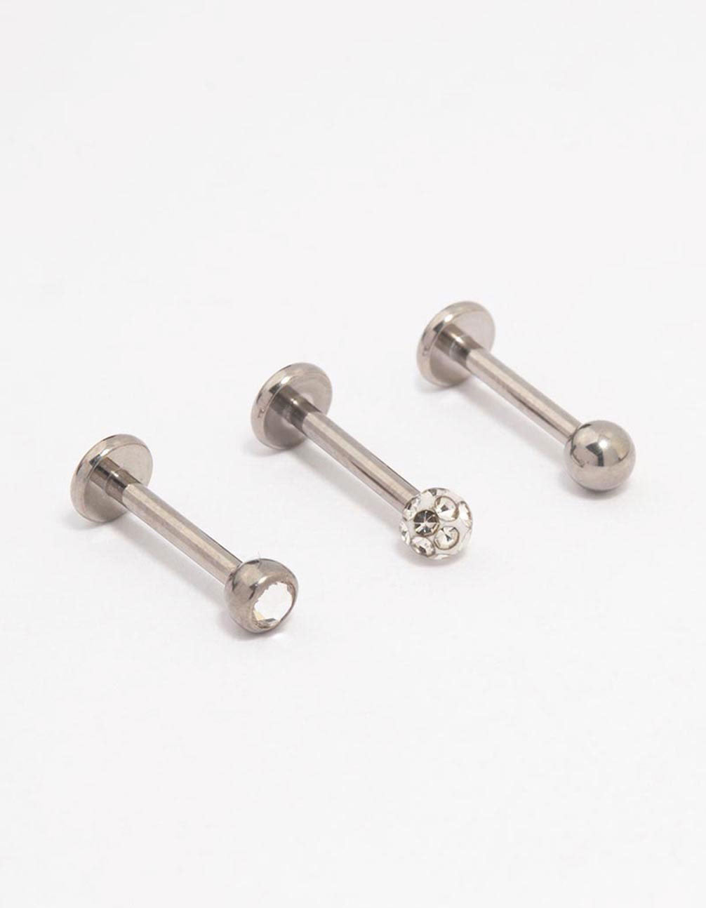 This flat back pack includes three individual flat back piercings, designed with cubic zirconia accents for a touch of glamour.