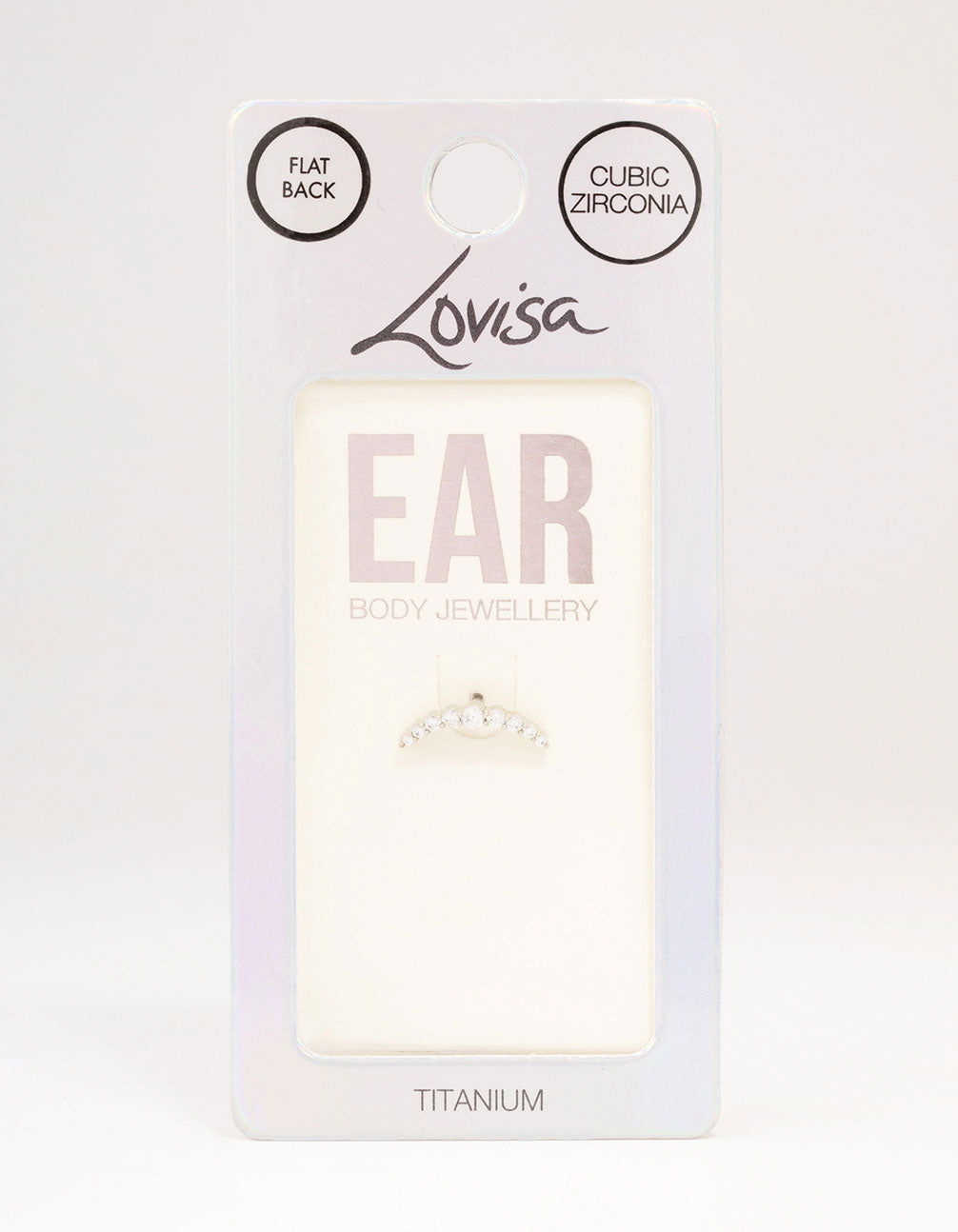This single titanium flat back features a curved, cubic zirconia design. Perfect for adding dimension to your stack.