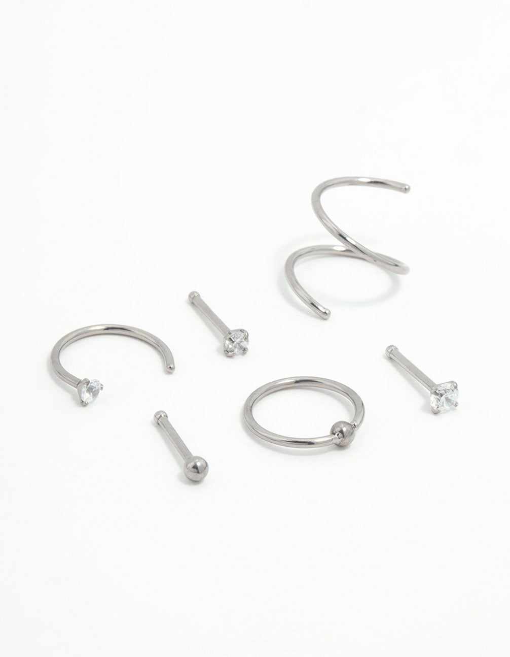 Titanium Cubic Zirconia Nose Piercings 6-Pack
