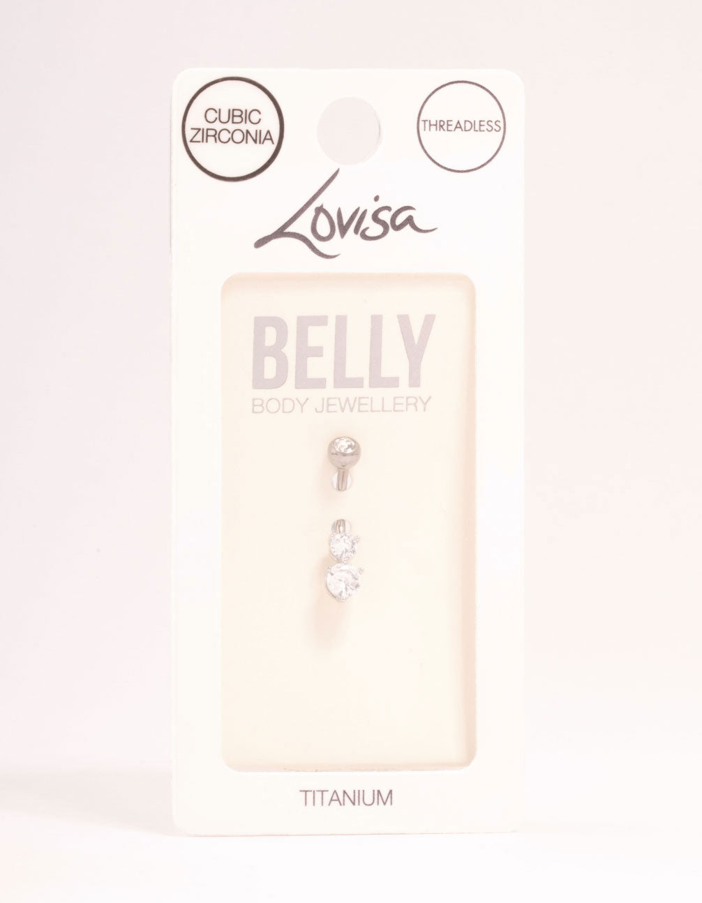 Jazz up your belly piercing with this titanium bar! It features double-layered cubic zirconia crystals for extra sparkle and a threadless design for effortless wear.