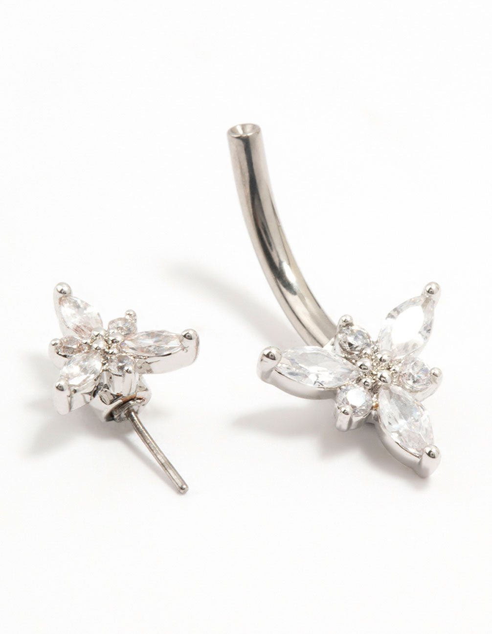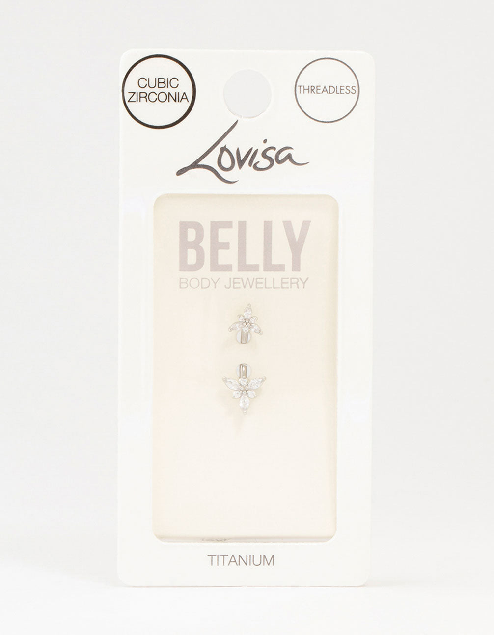 Polish your look with the Titanium Double Pointy Flower Threadless Belly Bar that features a sleek durable titanium base and shimmering cubic zirconia crystals. This belly button bar is the perfect accessory to complement your confident, cool vibe. This belly bar is durable, long-lasting and safe for sensitive skin. This belly bar features a cubic zirconia butterfly drop design with a threadless feature, which is perfect for more secure wear so your piercing doesn't fall out but still can be removed easily if you need to remove it.