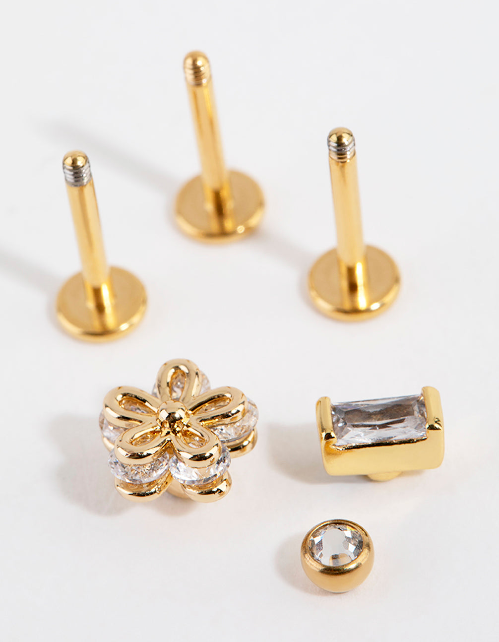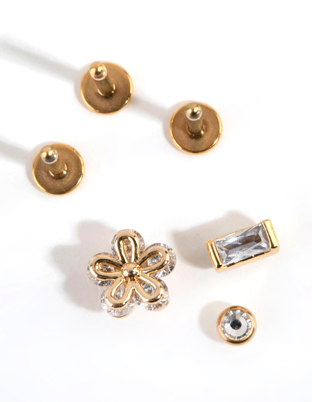 Express your individuality with Lovisa body jewellery! This earring pack includes three gold-toned studs which have flat backs for your comfort. They are made with titanium, which is gentle on ears. Each stud measures 16G/1.2mm.