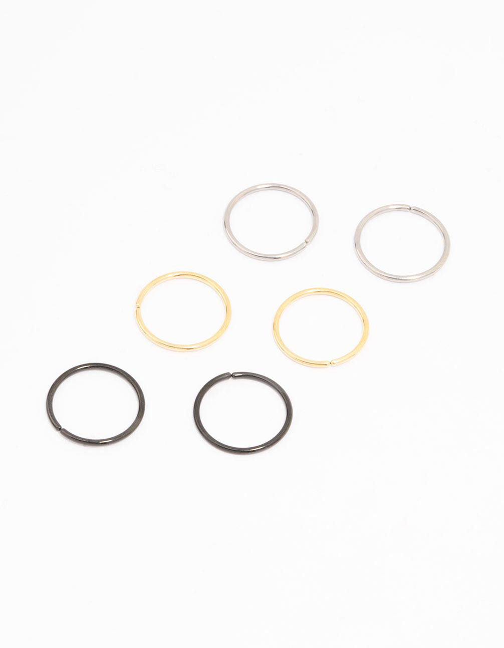 This nose ring pack includes six individual rings, designed with mixed metals for a unique finish.