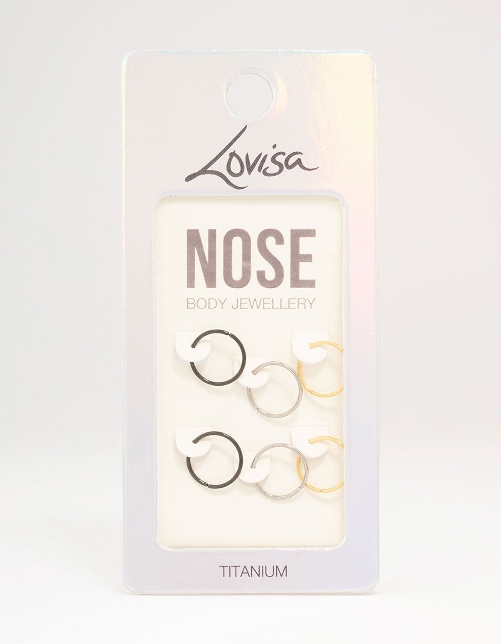 Titanium Mixed Metal Classic Nose Ring 6-Pack