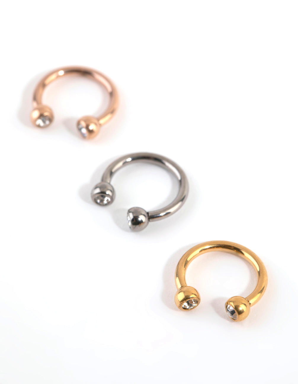 Mixed Metal Titanium Horse Shoe Earring Pack