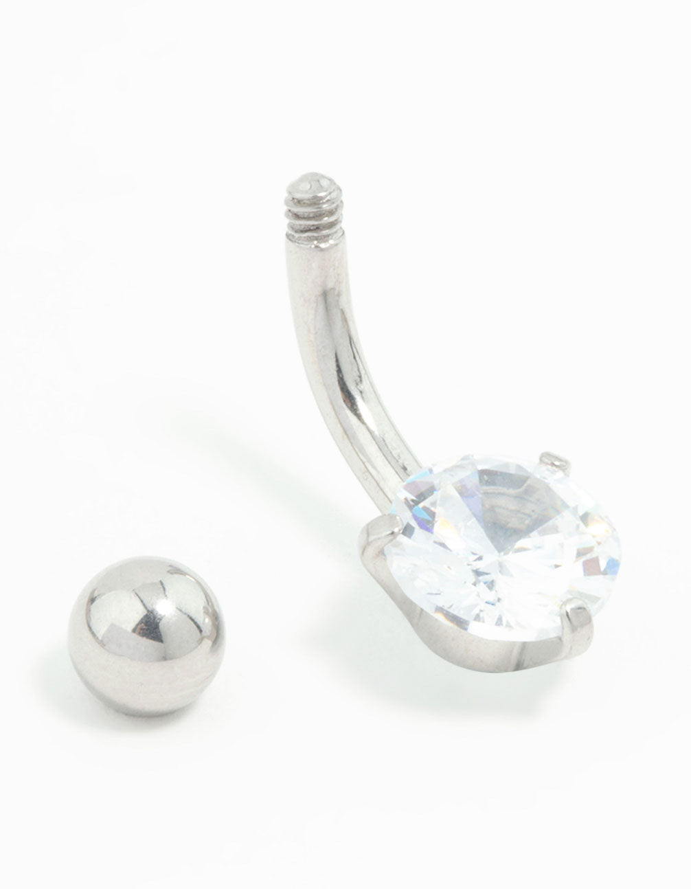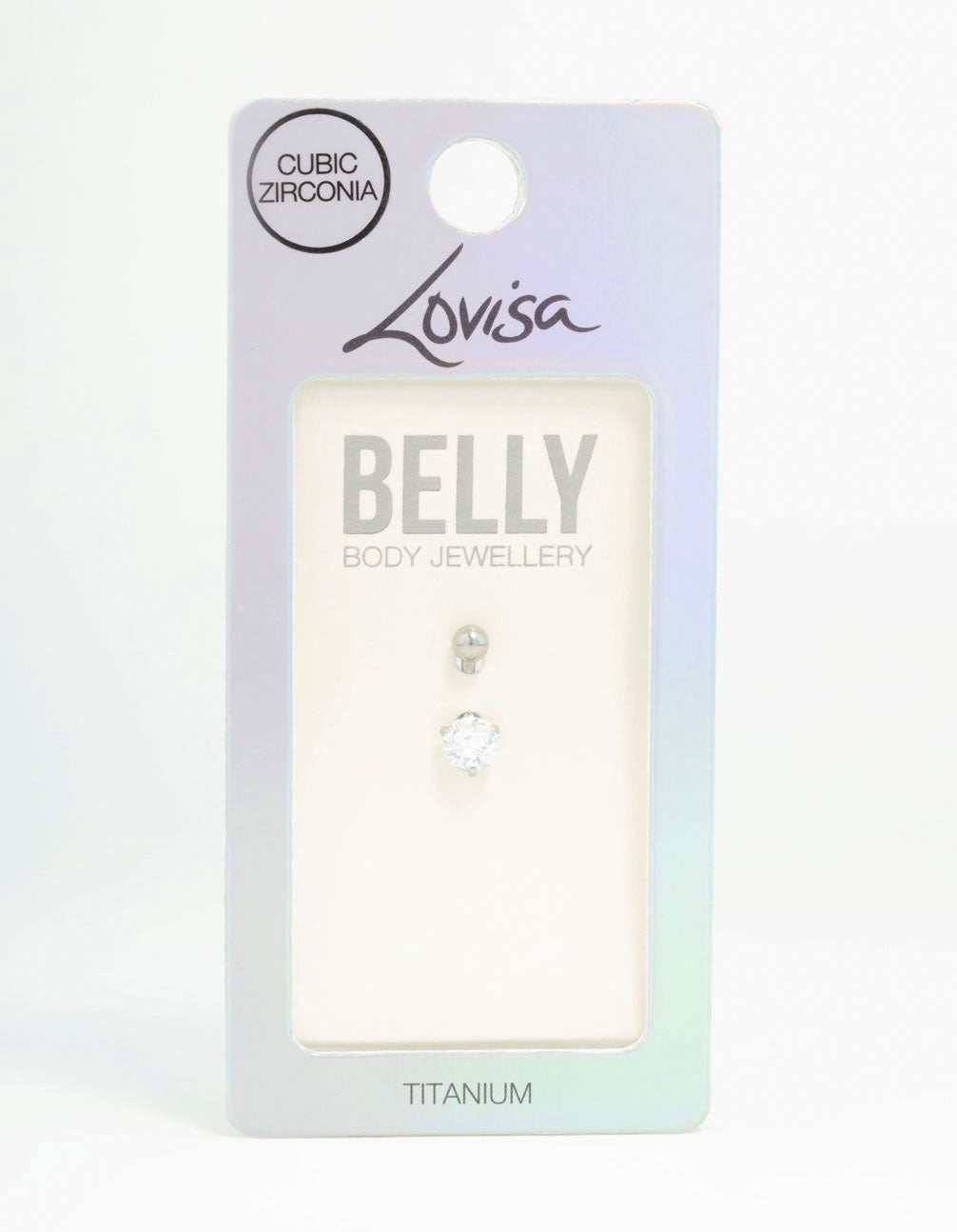 Titanium Round Cubic Zirconia Mini Belly Bar