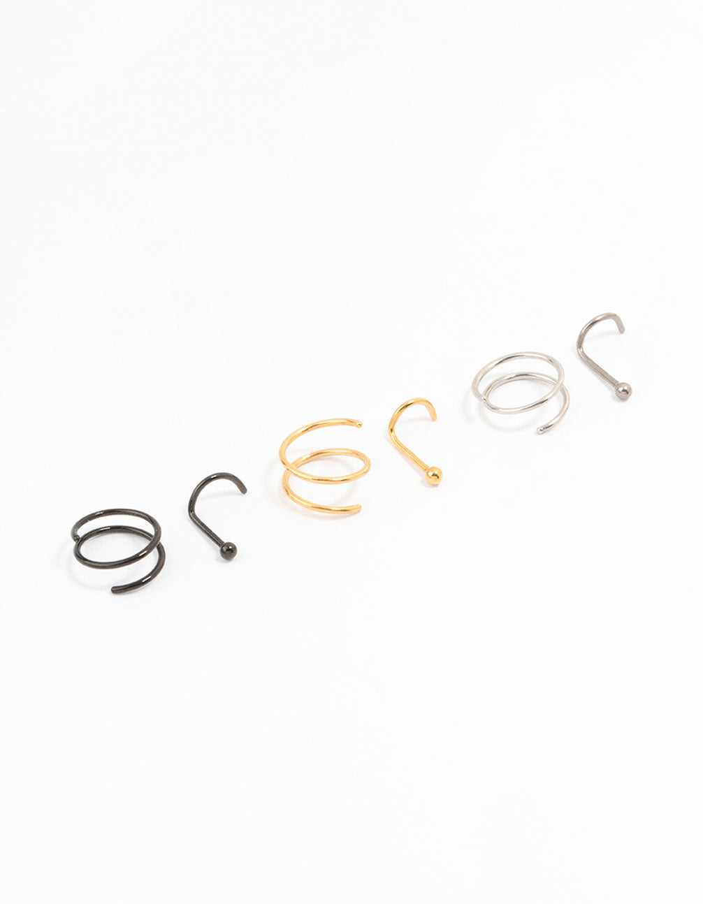 Titanium Spiral Mixed Nose Piercings 6-Pack