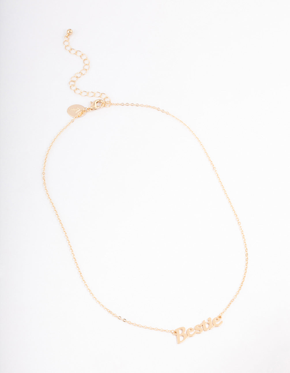 • This necklace features a gorgeous gold setting with a 'Bestie' script pendant, perfect for you and your BFF!