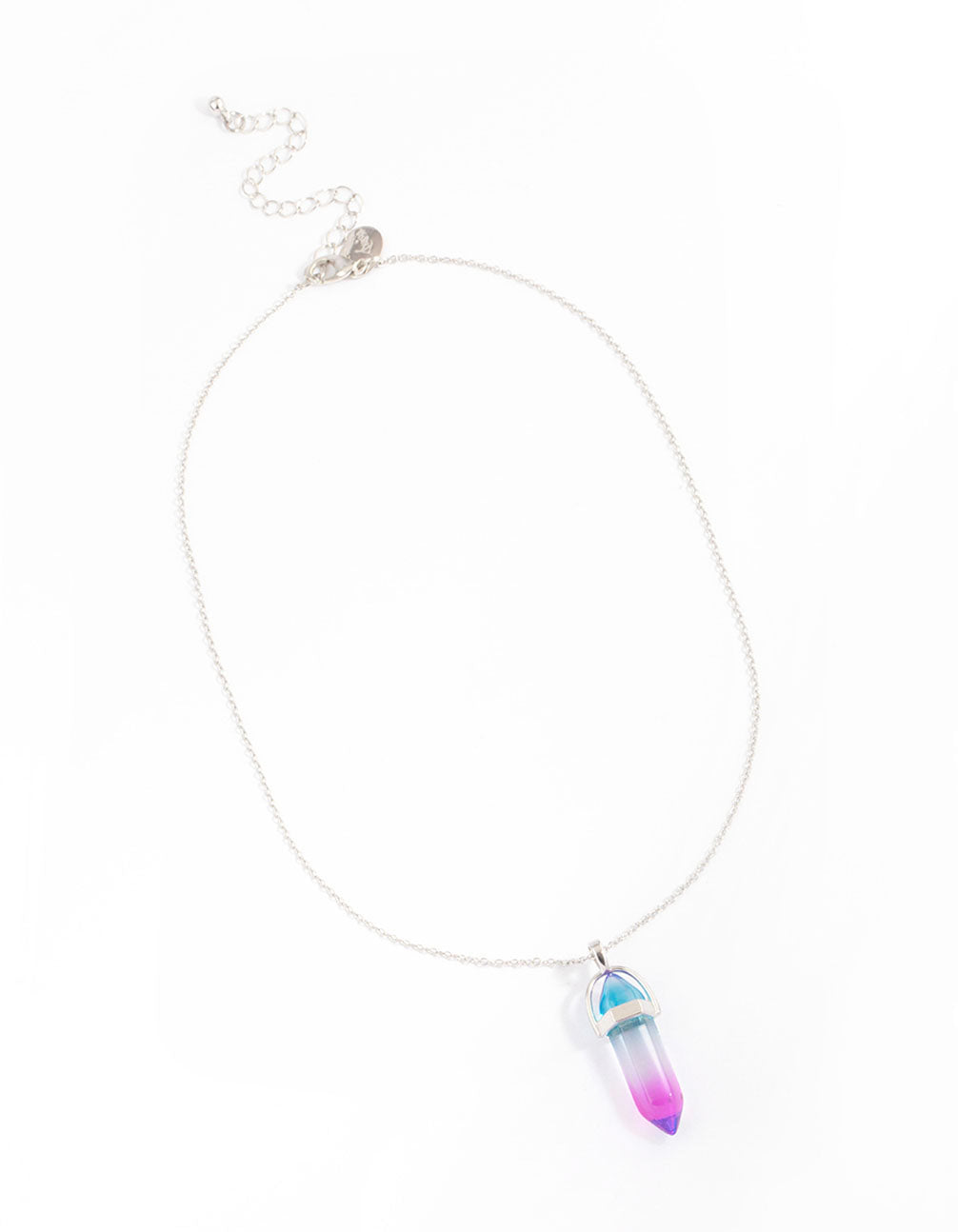 This pendant necklace features a silver-toned setting with a blue and lilac coloured crystal pendant for a glamorous finish.