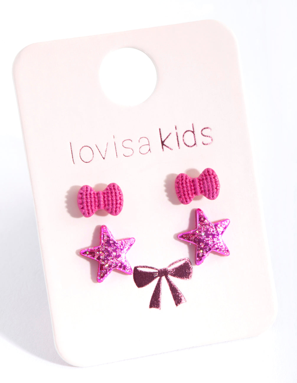 Kids Pink Star Heart Earring Pack