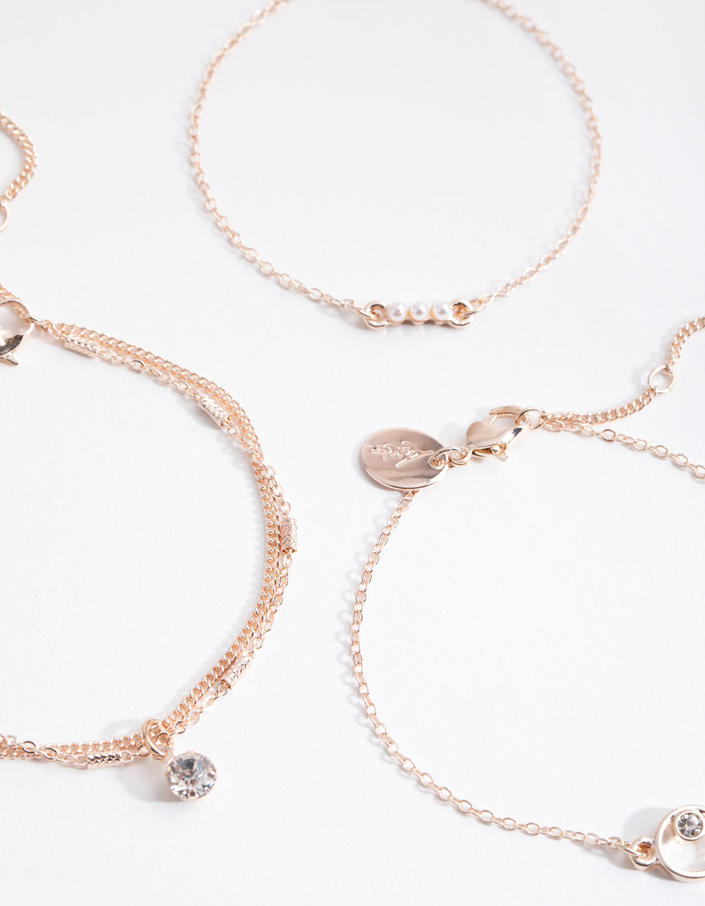 Rose Gold Diamante & Faux Pearl 4-Pack Bracelet