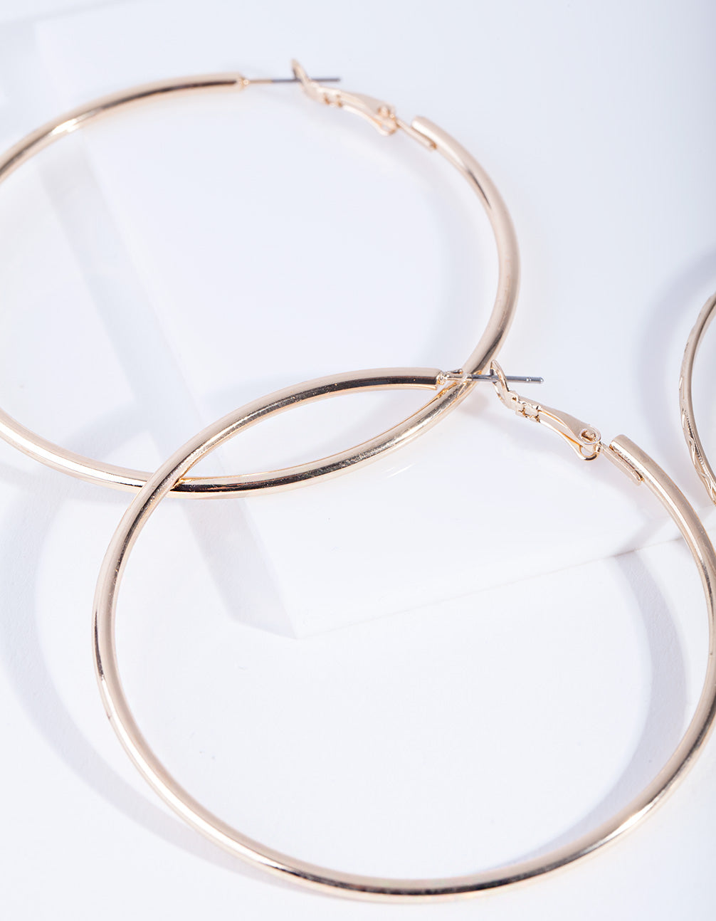 It takes two! This gorgeous pack of two classic hoop earrings are gold-toned and feature a 6cm in diameter. A classic hoop is such a staple in any wardrobe, not just a trend; hoops are forever!