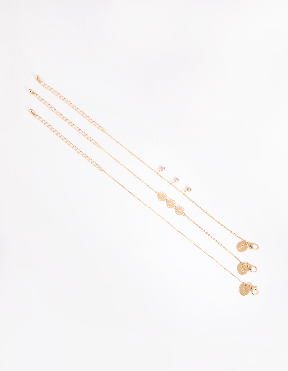Style a graceful ensemble with this dainty bracelet pack. On a gold-toned setting, these bracelets boast fine chains that are adorned with petite diamantes and charms. Wear them together, or separately for a considered look.