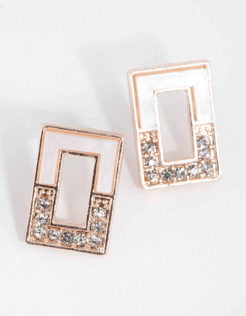 Rose Gold Half Diamante Rectangular Stone Earrings