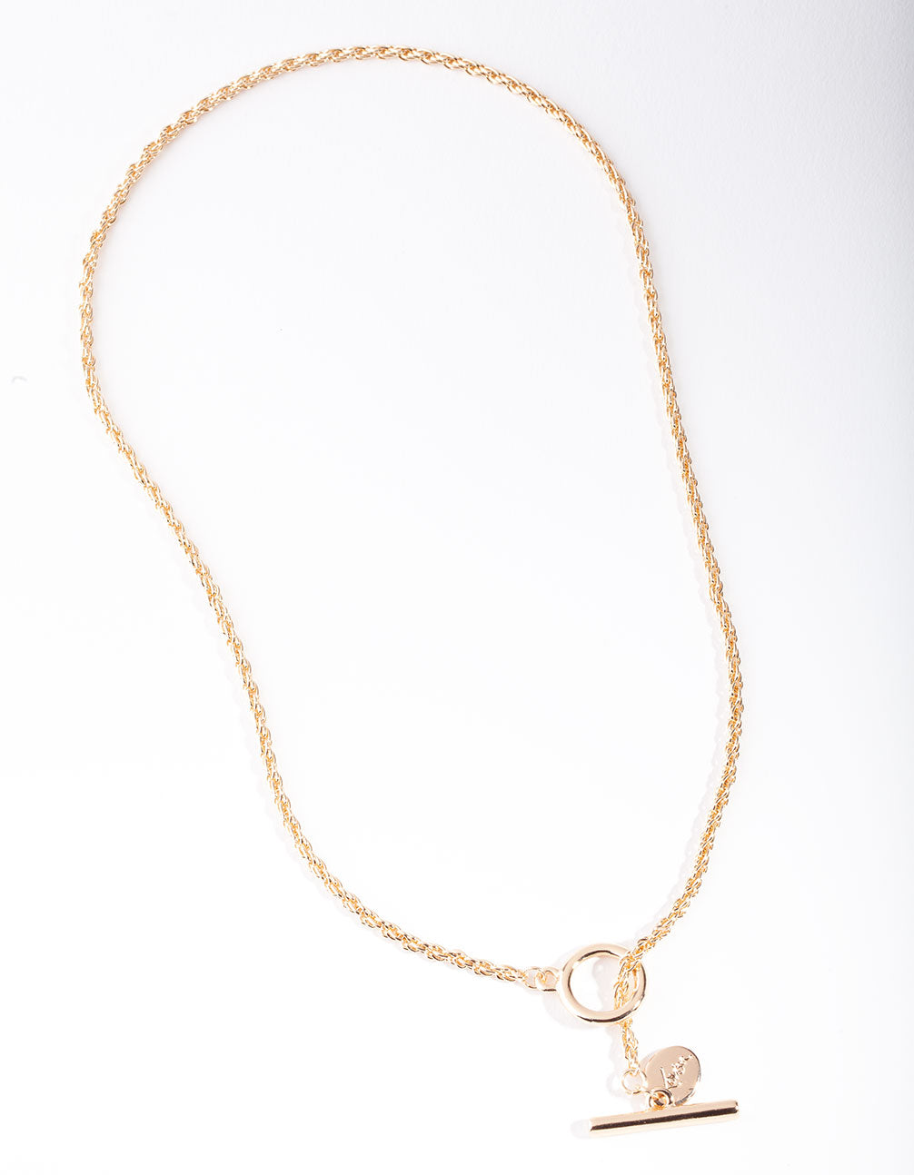 Gold Round Chain T-Bar Necklace