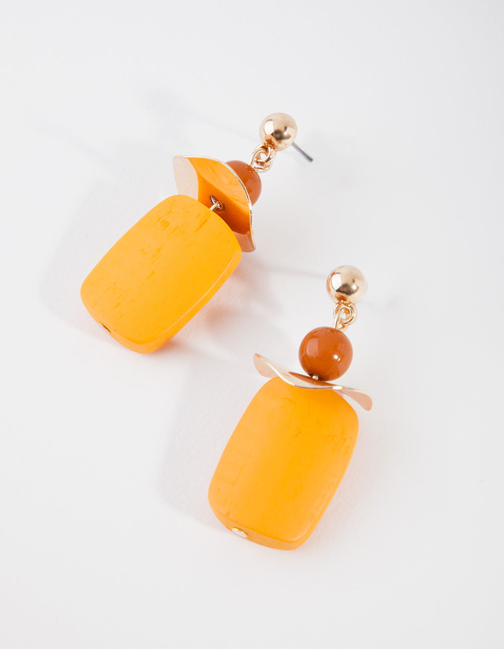 Elevate your daily ensemble with these gold-toned wood block drop earrings.