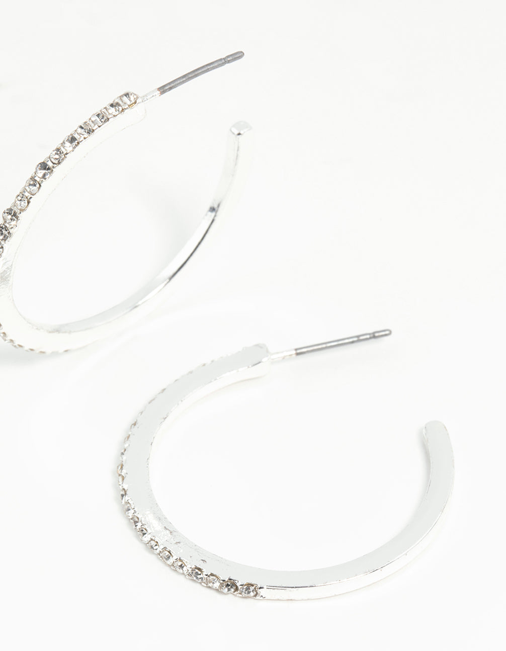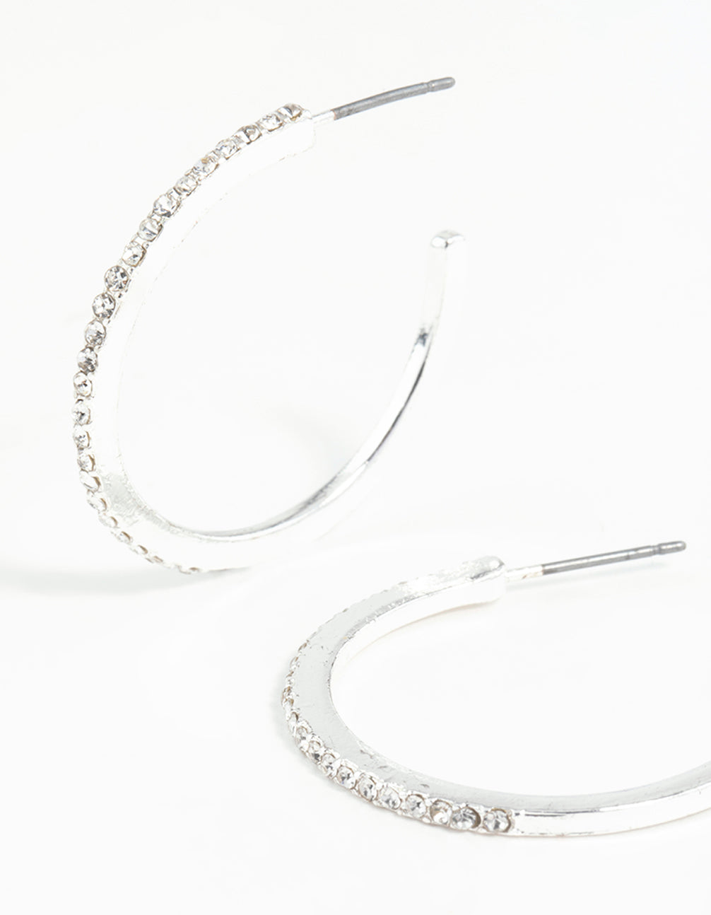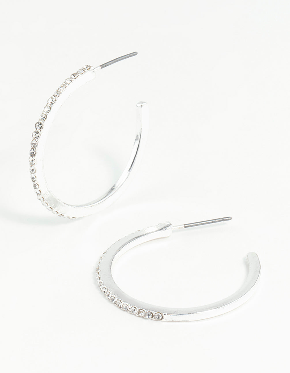Add some extra style to your look with fashion earrings. This pair features a silver-toned setting with diamante embellishments. Style with silver-toned chain layered necklaces and scattered dainty rings for an on-trend finish!