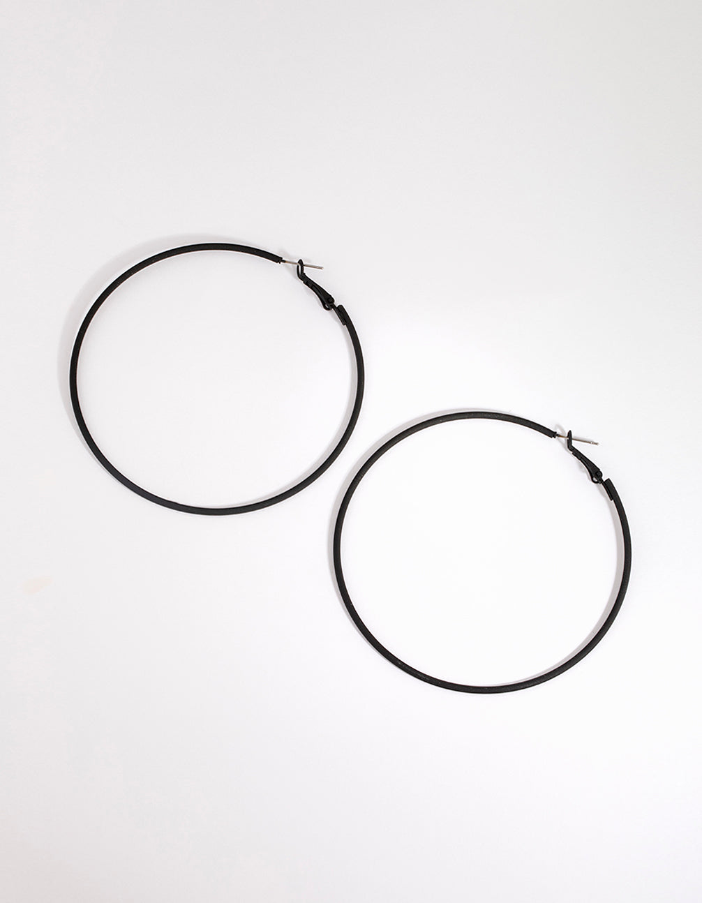 These extra-large hoop earrings are sure to get you noticed! They’re black, and have a matte finish.