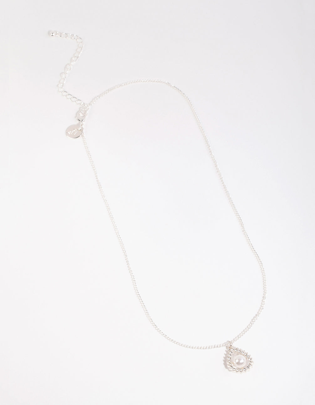 Silver Diamante Open Pear Pearl Necklace