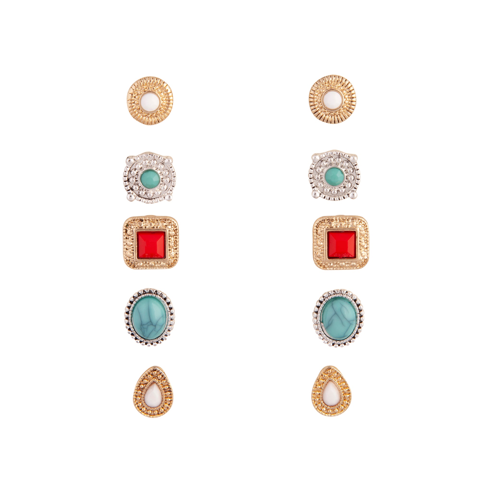 Mixed Metal Bohemian Stone Clip-On Earring 5-Pack