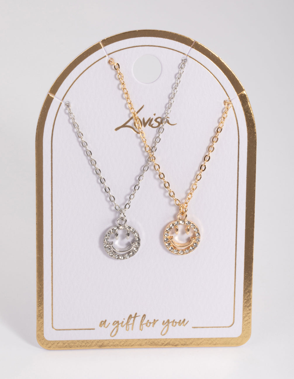 Mixed Metal Cute Diamante Smiley Necklace Pack