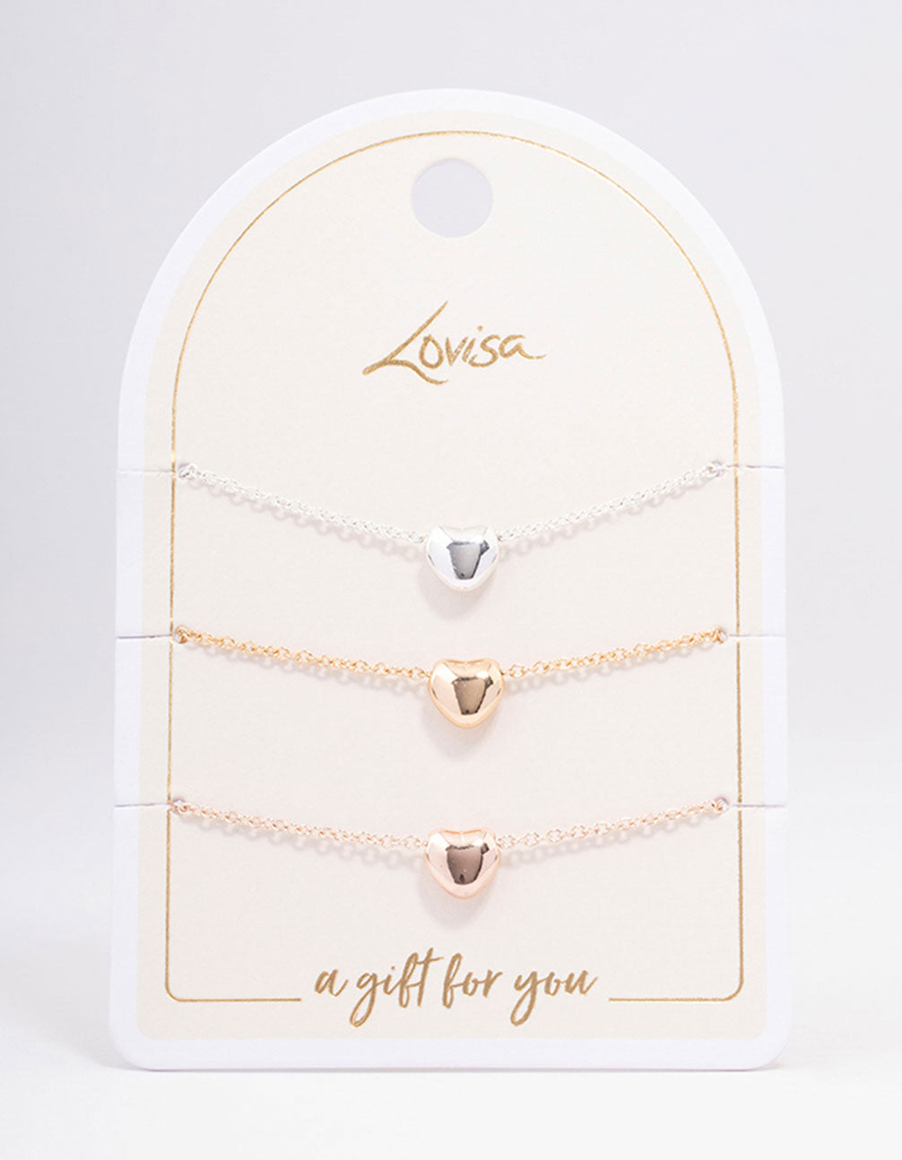 Mixed Metal Triple Heart Bracelet 3-Pack