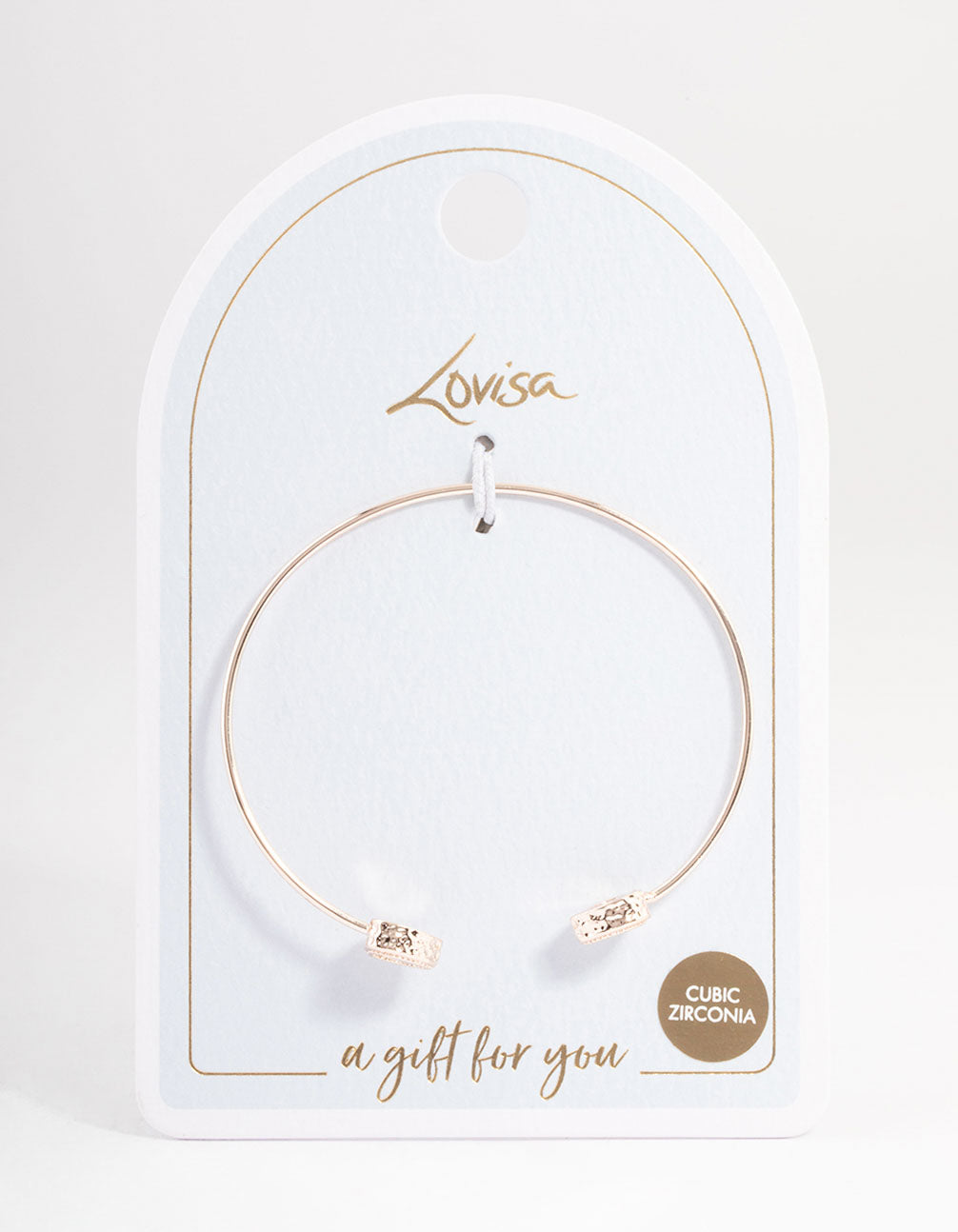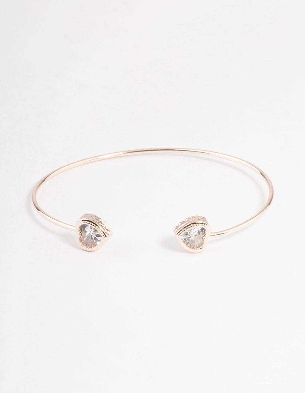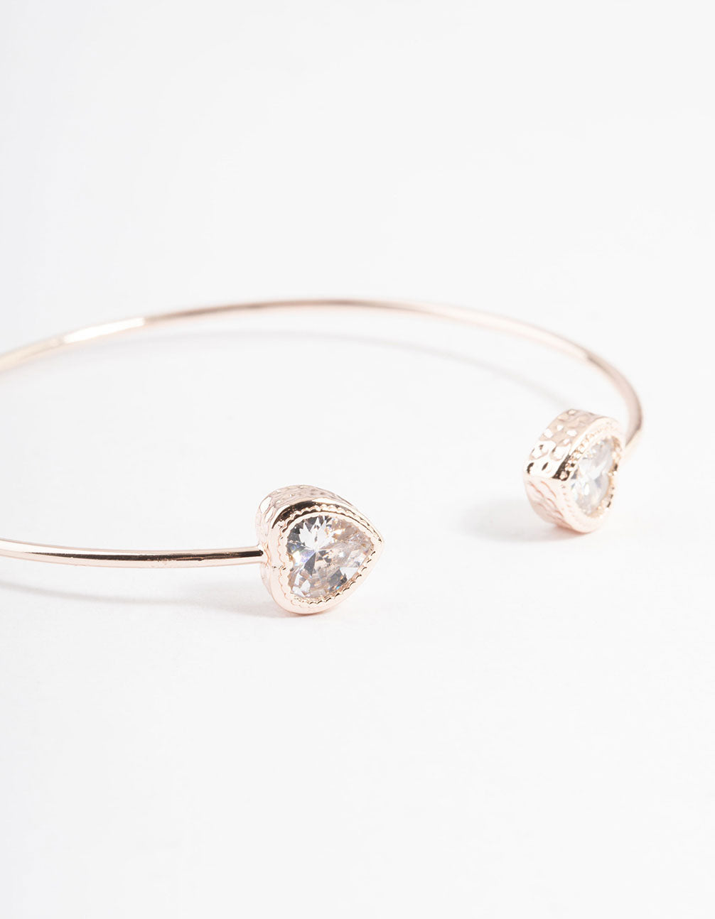 Rose Gold Cubic Zirconia Heart Open Cuff Bangle