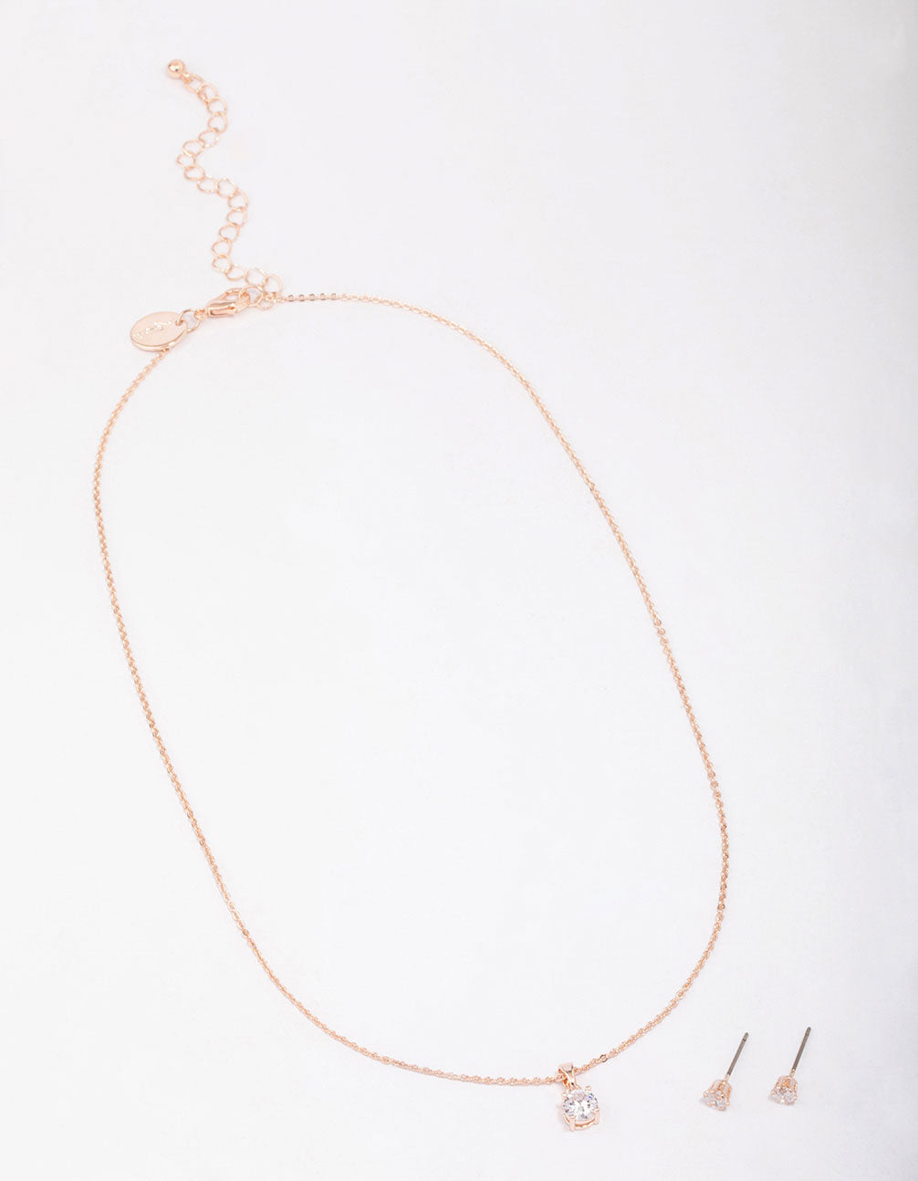 Rose Gold Round Solitaire Crystal Jewellery Set