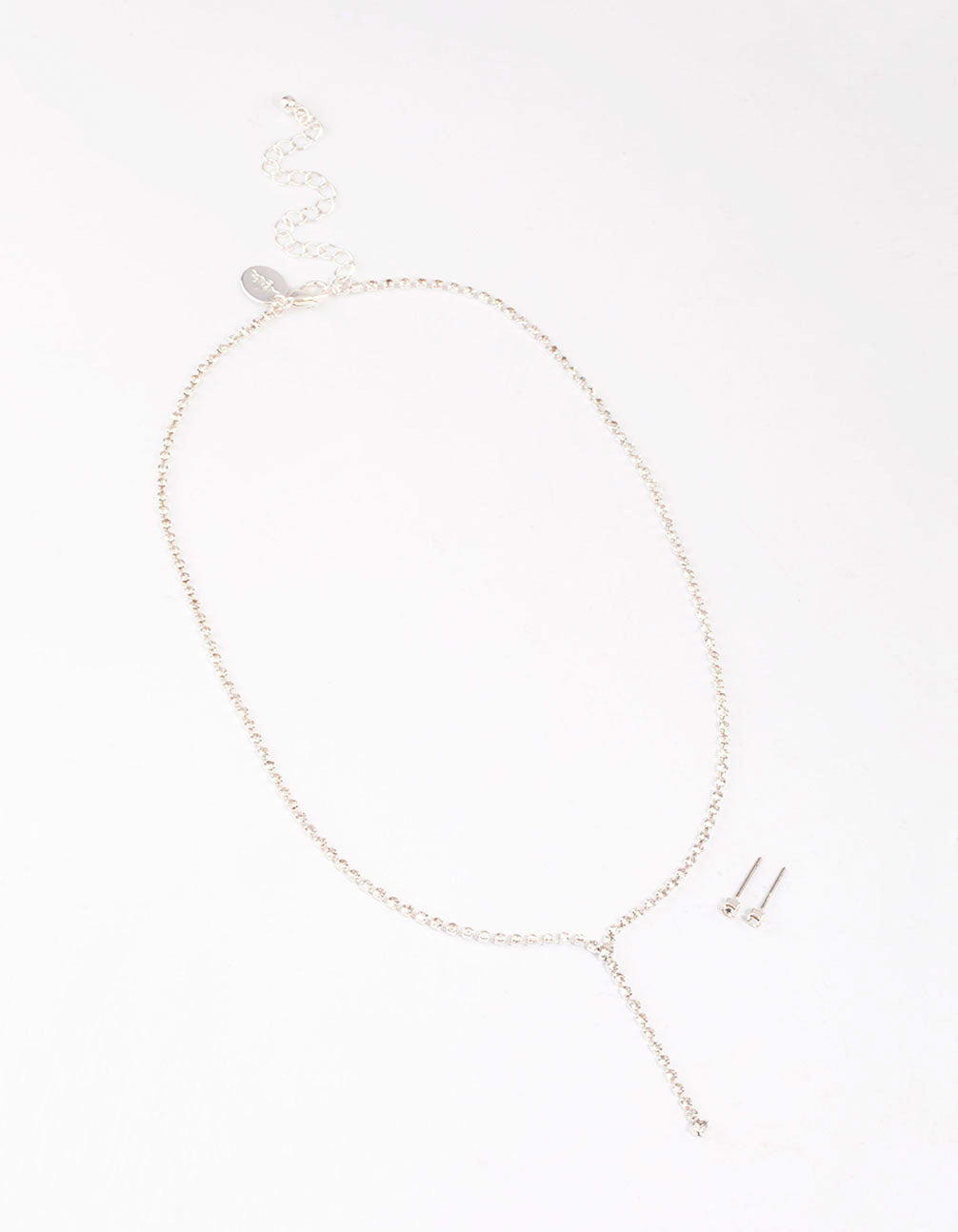 Silver Cup Chain Y-Shaped Necklace & Earring Set