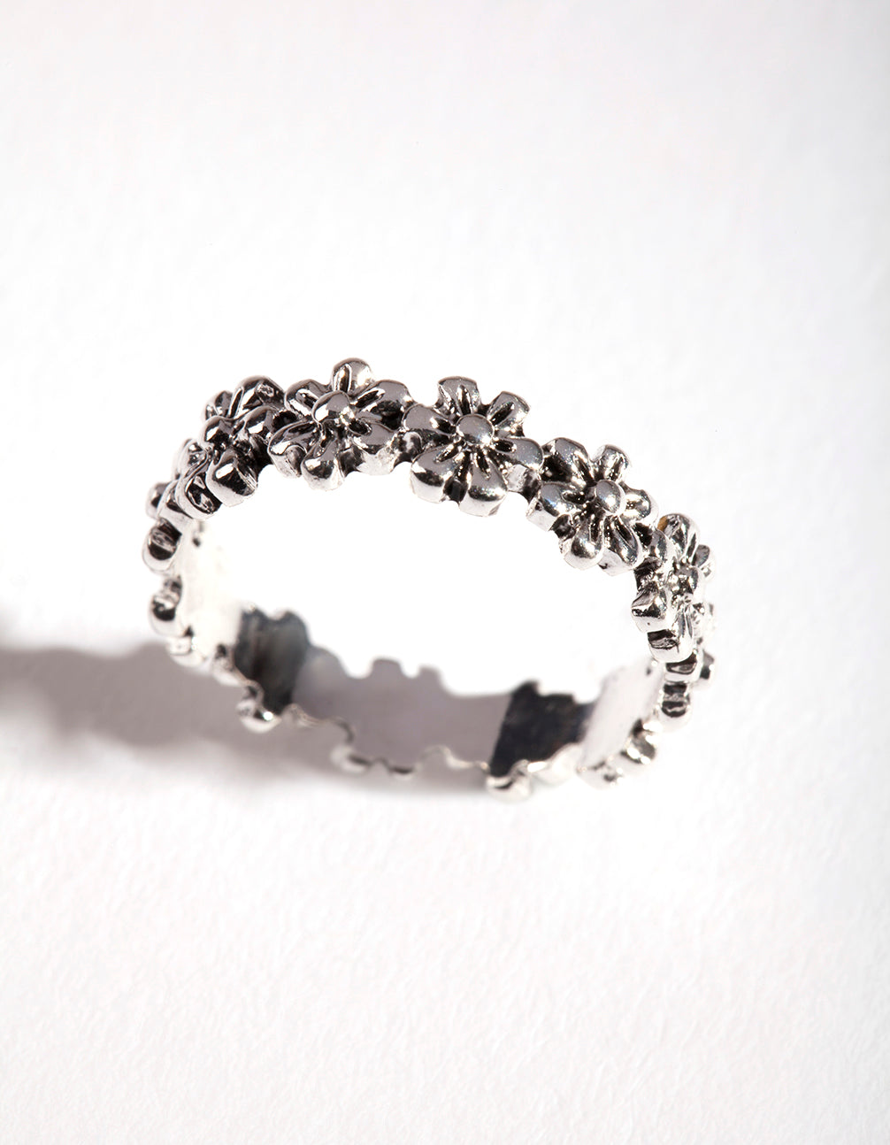 Elevate your ensemble with this stunning silver-toned continuous flower ring.