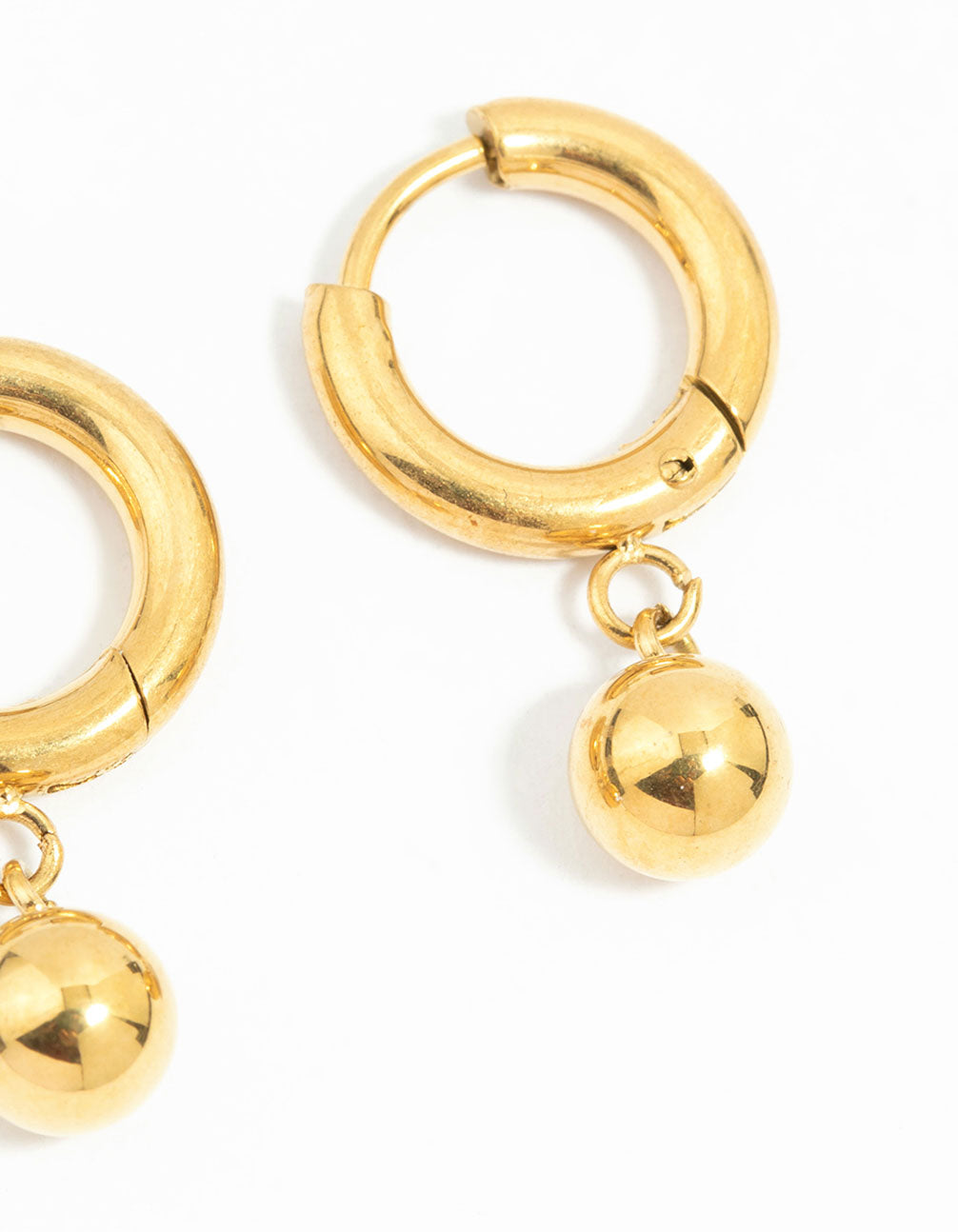 Waterproof Gold Plated Stainless Steel Ball Earrings 2-Pack
