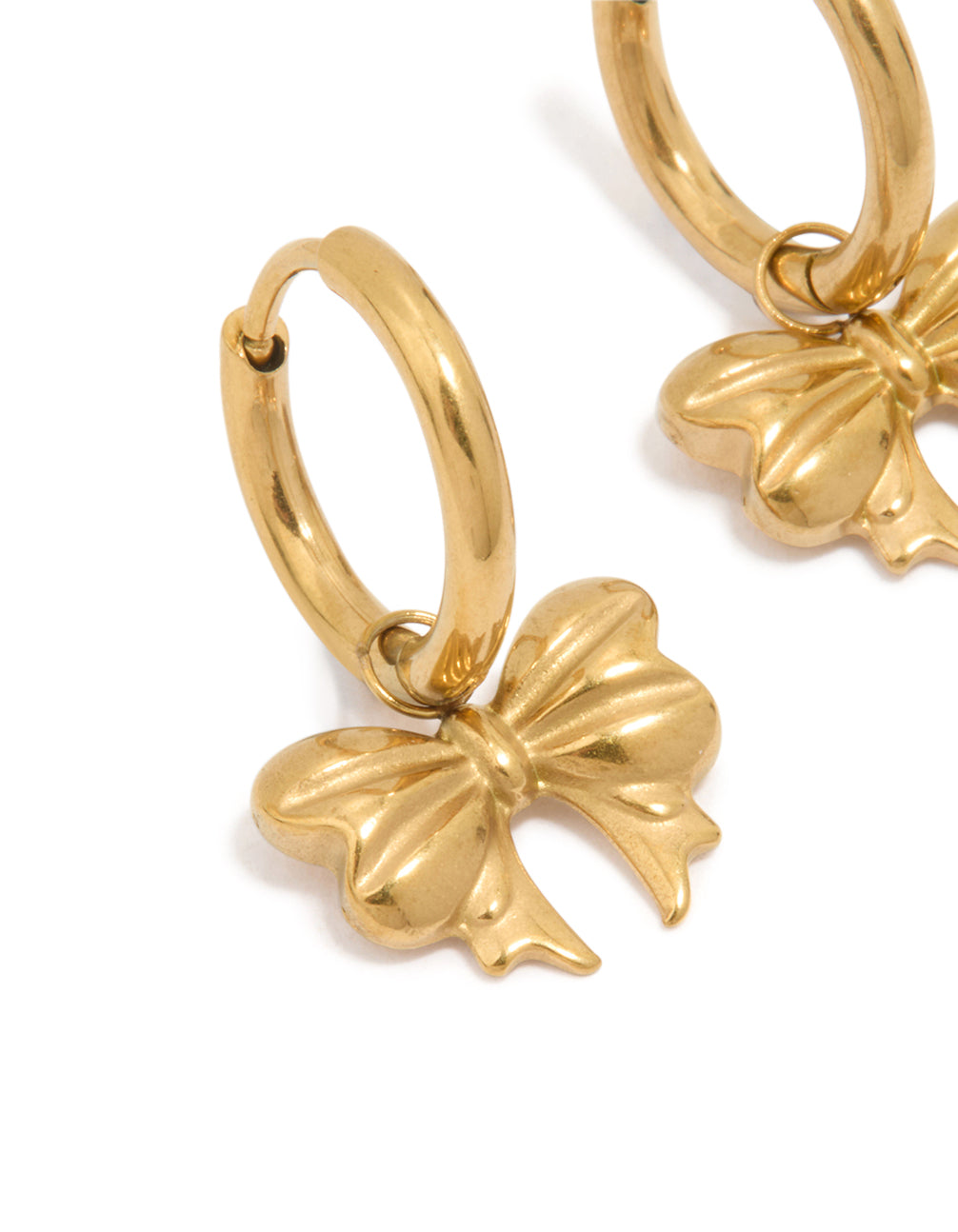 Waterproof Gold Plated Stainless Steel Bow Hoop Earrings
