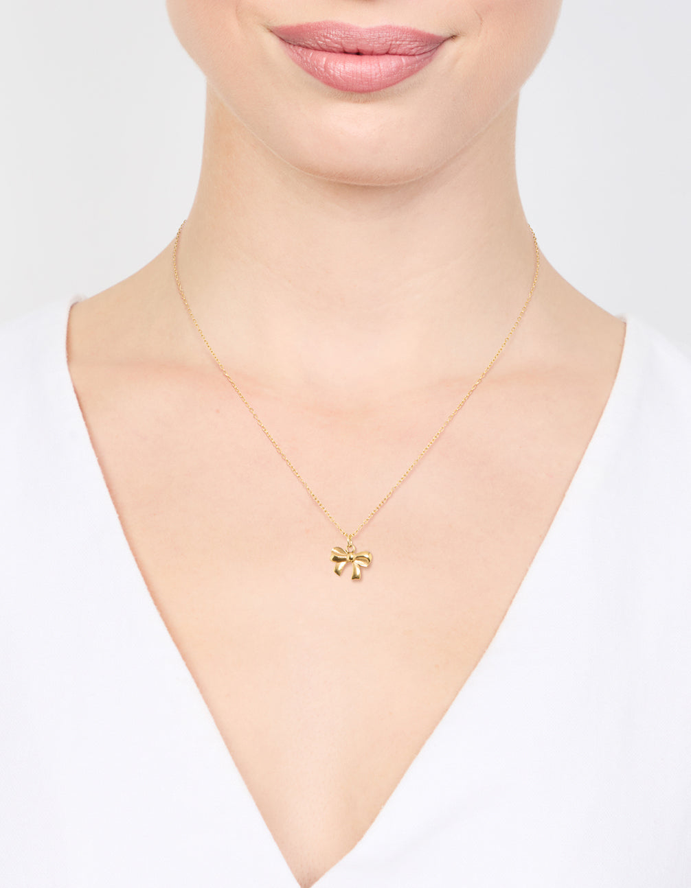 Add a touch of elegance to your outfit with this Waterproof Gold Plated Stainless Steel Bow Pendant Necklace. This charming piece combines a playful bow design with the durability of stainless steel and the luxurious finish of gold plating. Perfect for everyday wear or special occasions, it's ideal for layering with other necklaces or standing out on its own. Whether paired with a casual tee or a chic dress, this pendant necklace adds effortless style. And with its waterproof feature, you can keep it on from brunch to the beach without a worry. A versatile and timeless accessory for any jewellery collection!