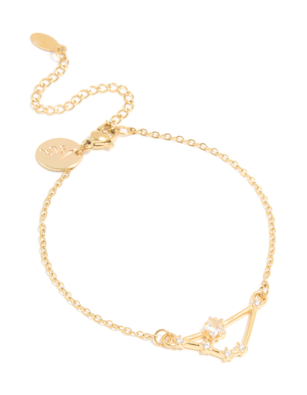 Waterproof Gold Plated Stainless Steel Cubic Zirconia Capricorn Zodiac Sign Bracelet