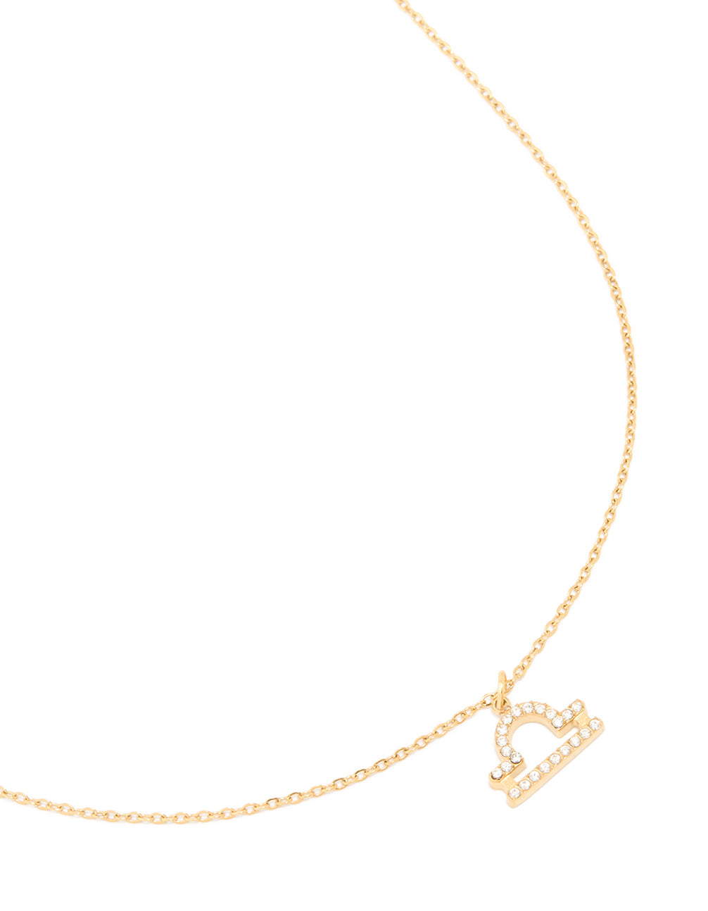 Waterproof Gold Plated Stainless Steel Cubic Zirconia Libra Zodiac Sign Necklace