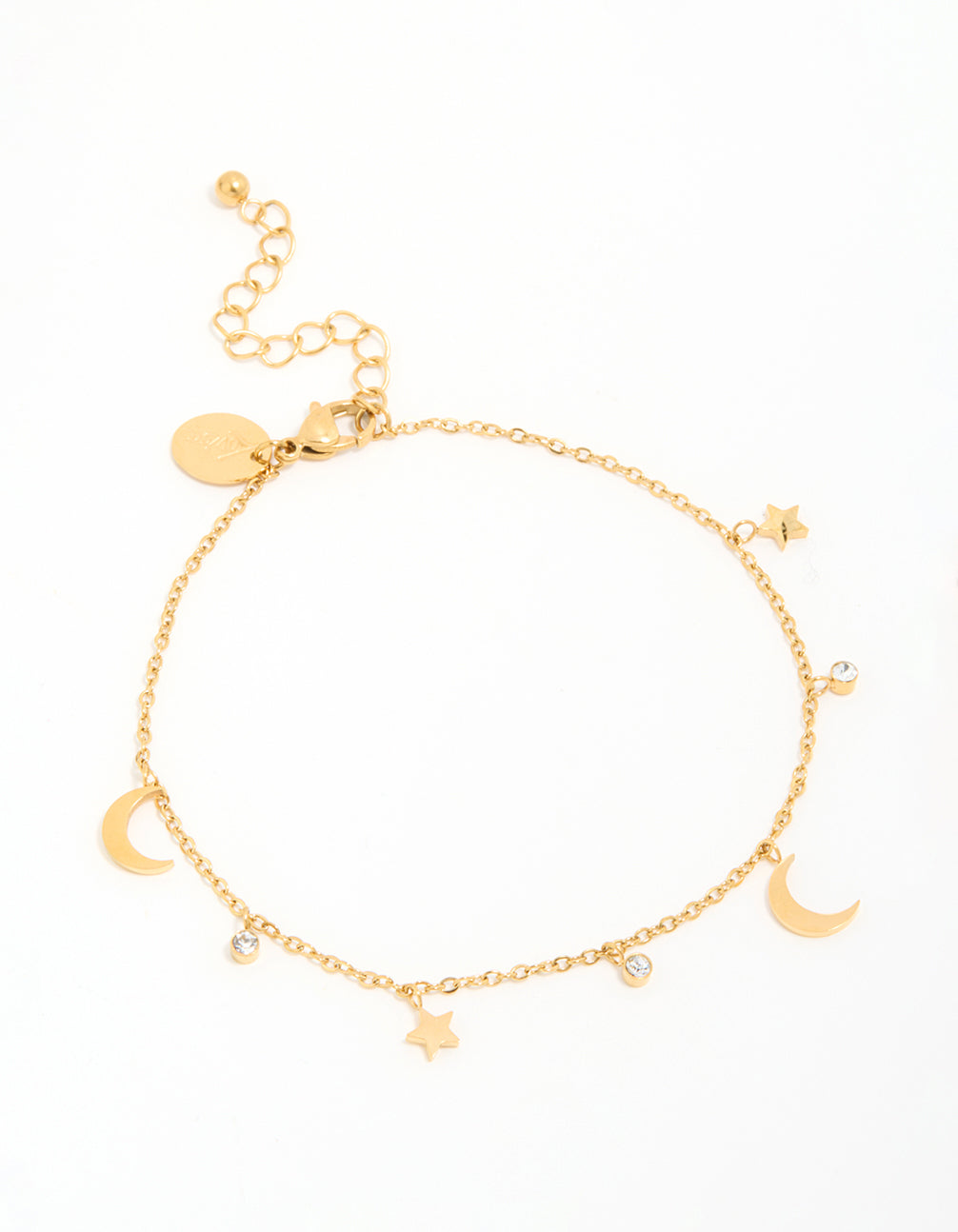 Waterproof Gold Plated Stainless Steel Cubic Zirconia Moon & Star Anklet