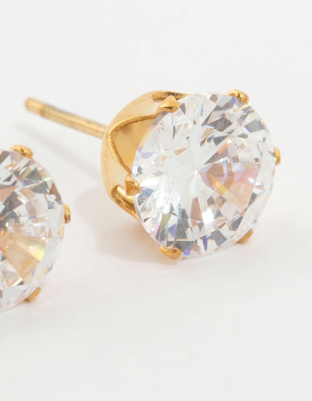 Brighten up your look with these Waterproof Gold Plated Stainless Steel Cubic Zirconia Stud Earrings! These crystal-clear stunners feature an 8mm cubic zirconia crystal, perfectly set in durable gold-plated stainless steel for a sleek and timeless vibe. Whether you're off to a party, brunch, or just sprucing up your everyday style, these stud earrings are adventure-proof and ready for anything. Lightweight and versatile, they're an ideal choice for pairing with casual jeans and a tee or your favourite dress for a polished finish. Perfect for those seeking sparkling jewellery that's both stylish and practical!