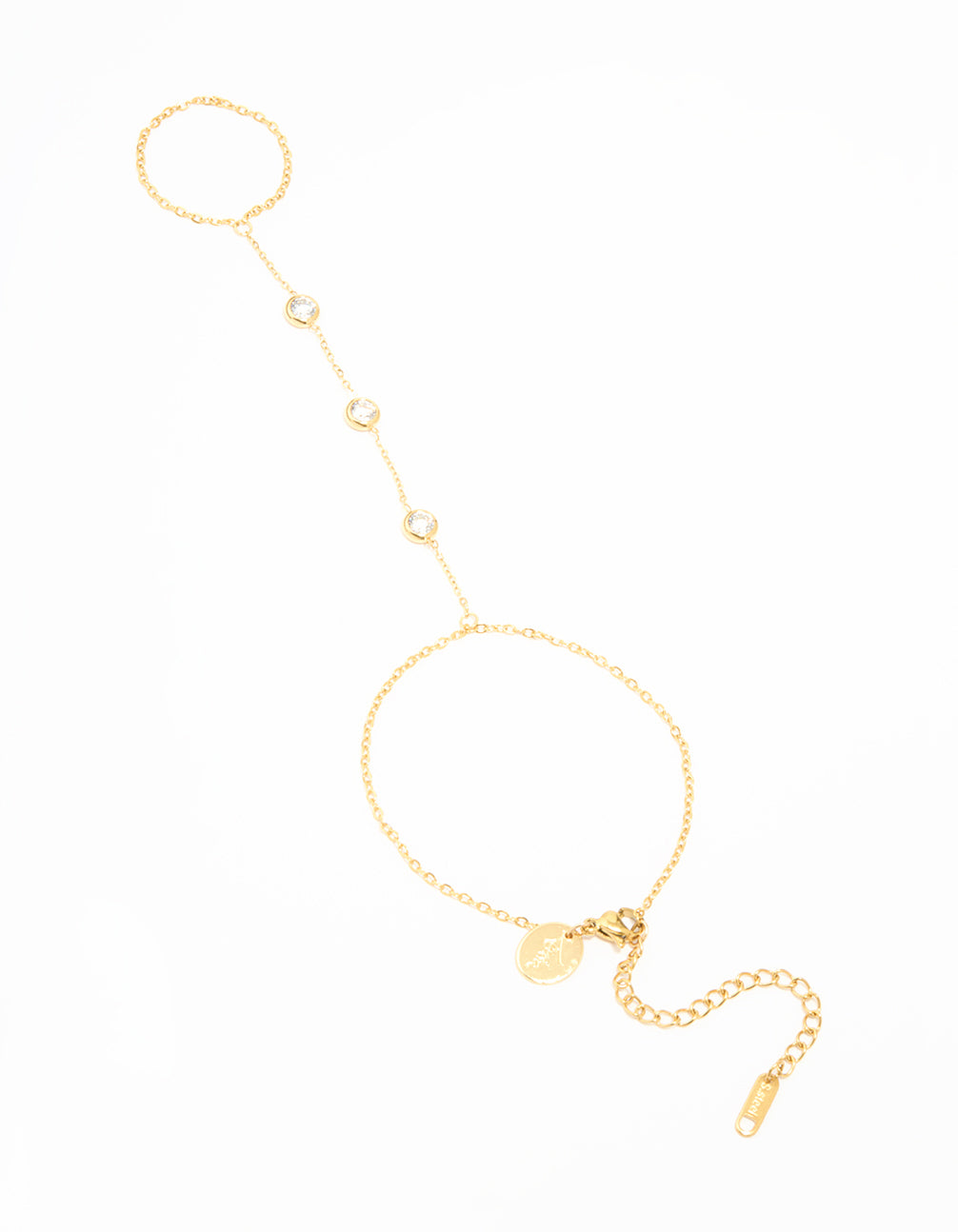 • Waterproof Gold Plated Stainless Steel Diamante Bezel Hand Chain - link has visual effect only
