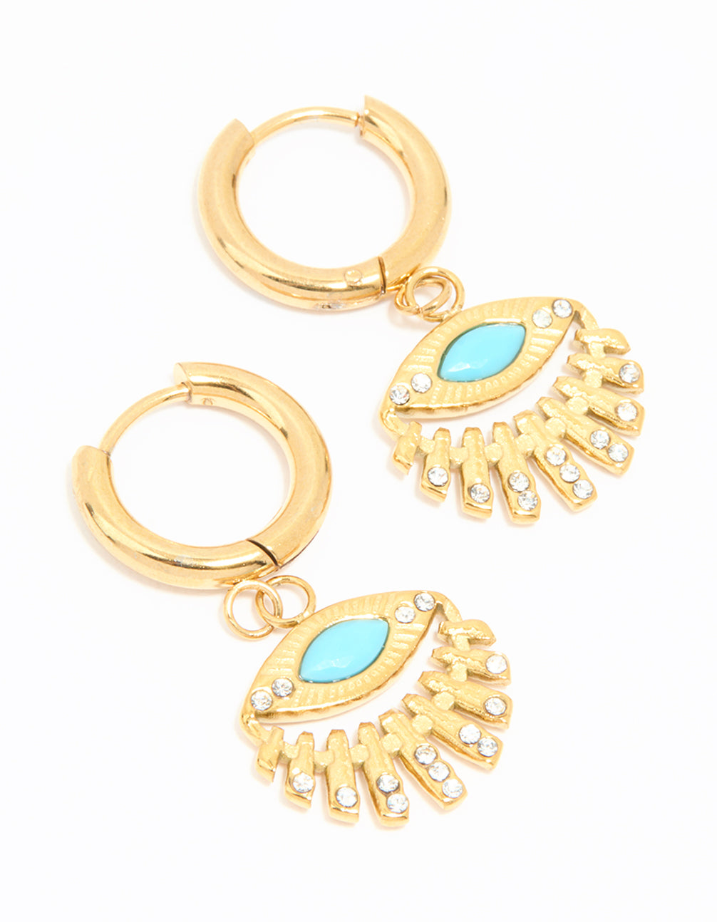 Turn heads with these Waterproof Gold Plated Stainless Steel Fan Evil Eye Drop Earrings. Featuring a sleek fan shape paired with the iconic evil eye design, these drop earrings are perfect for adding a playful yet elegant vibe to your look. Crafted from durable stainless steel with fine gold plating, they're not only stylish but also built to last. Ideal for a day out with friends or a chic dinner date, these earrings pair beautifully with casual outfits or a little black dress. Whether you're dressing up or keeping it laid-back, these earrings are a versatile jewellery piece you'll love reaching for.