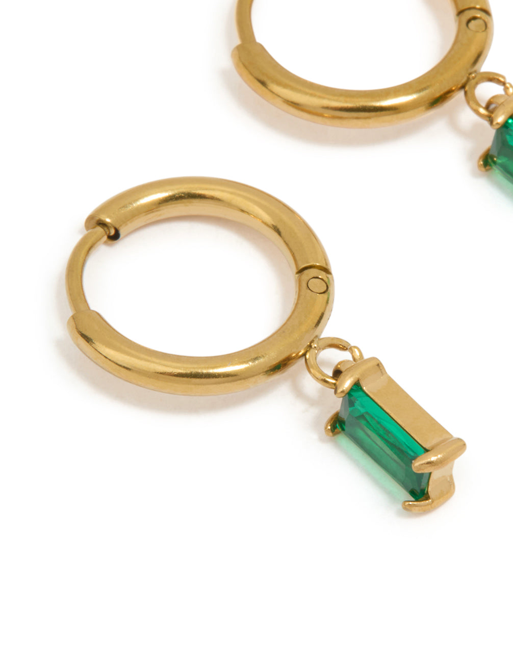 Waterproof Gold Plated Stainless Steel Green Baguette Huggie Earrings