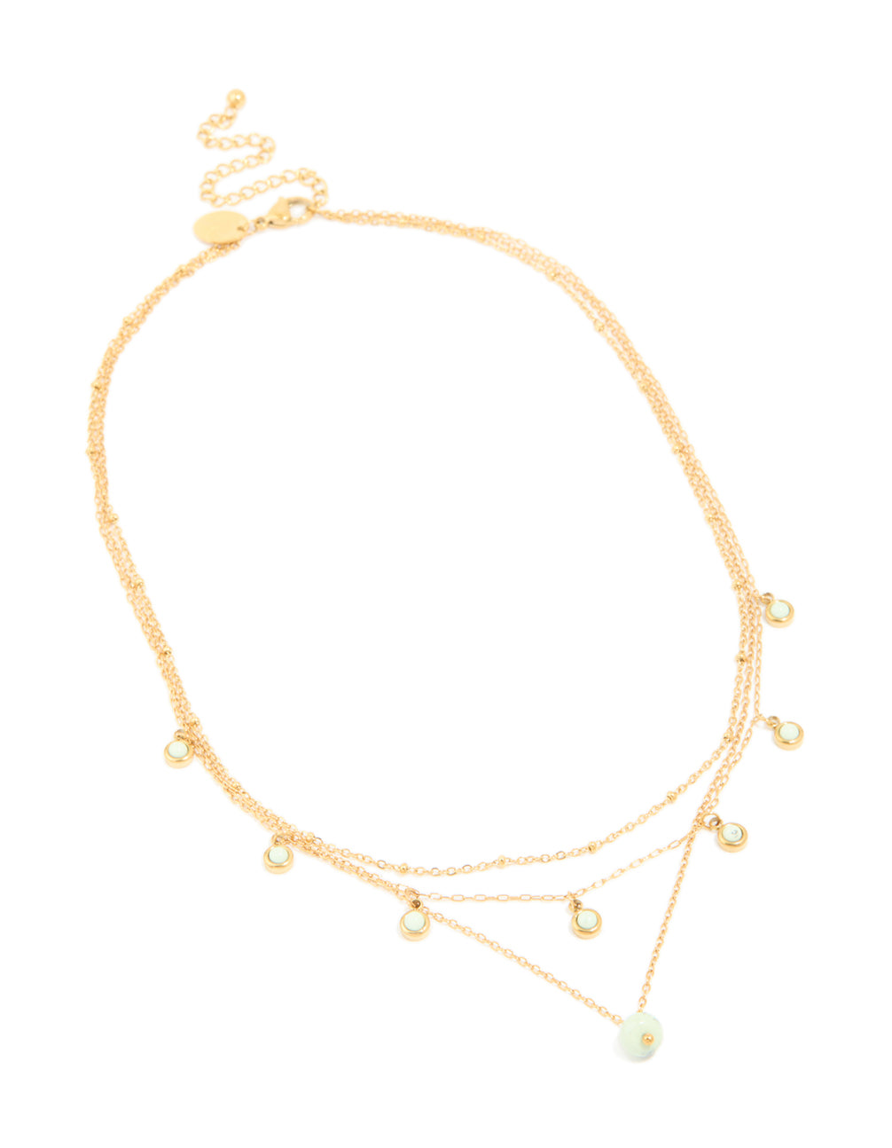 Waterproof Gold Plated Stainless Steel Green Jade Semi Precious Stone Pendant & Chain Layered Necklace